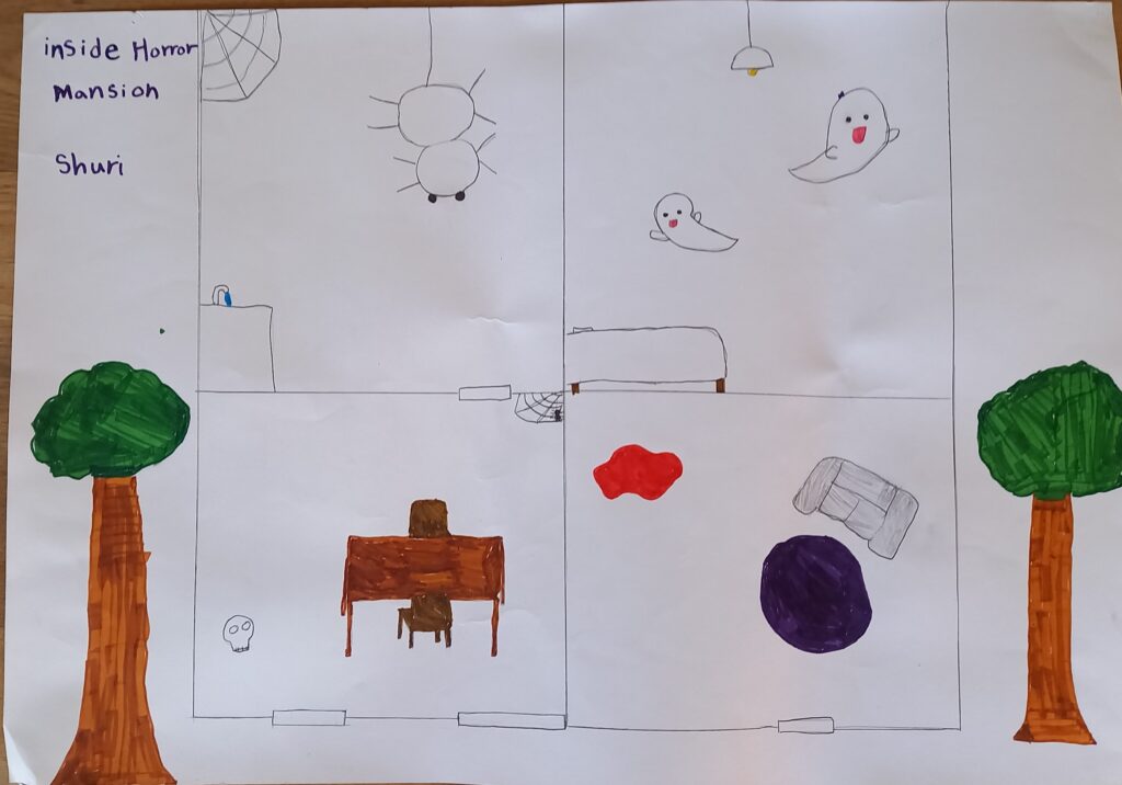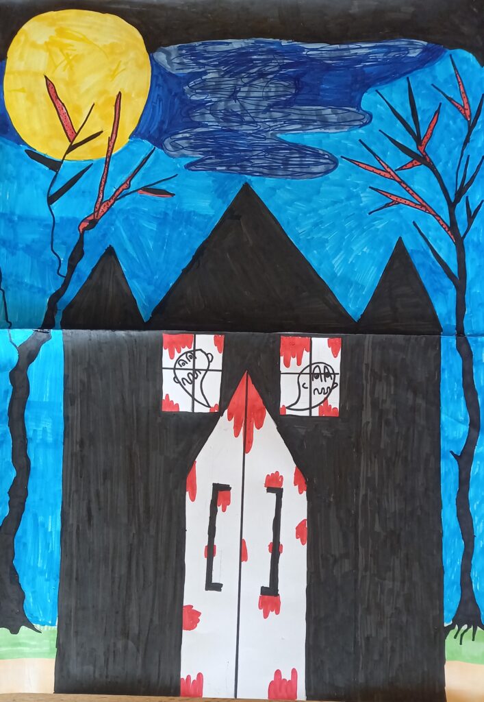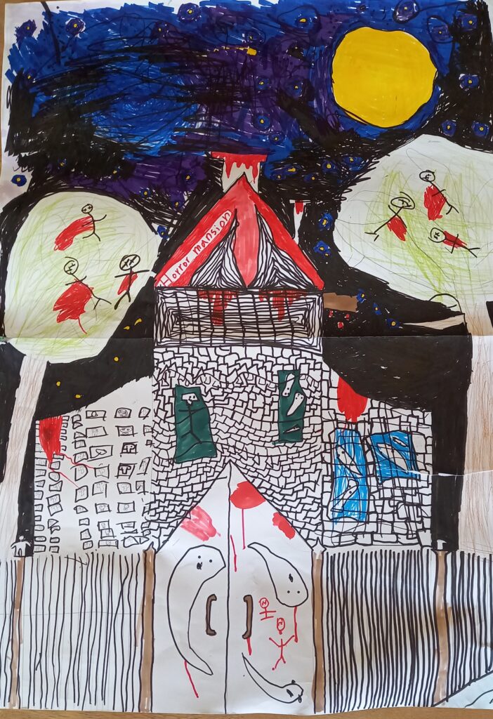 I was completely blown away by Grade 4’s work on the Year End Performance! The imagination and the passion were second to none I thought! Their growth has been amazing! For the performance they worked hard on adding physicality to their movement on stage and emotion and clarity to their dialogue. They were able to collaborate on two original pieces of music, design their own characters, work on their own lines and visualize the world of the story thru colourful posters and props!