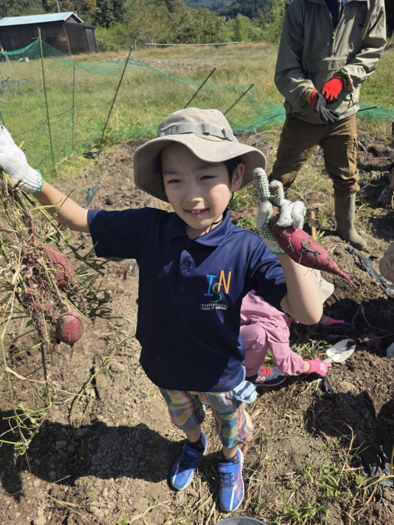 Only a few weeks ago, grade 2 harvested sweet potato that we had planted back in the summer. When we arrived, it looked like an animal had treated itself to some of our sweet potato, but that alright because the students were not deterred, and they wanted to find the sweet potato that they had worked hard for. We managed to harvest quite a number of sweet potato and we also got some big ones. This week, we’ll enjoy grilling them and eating them.