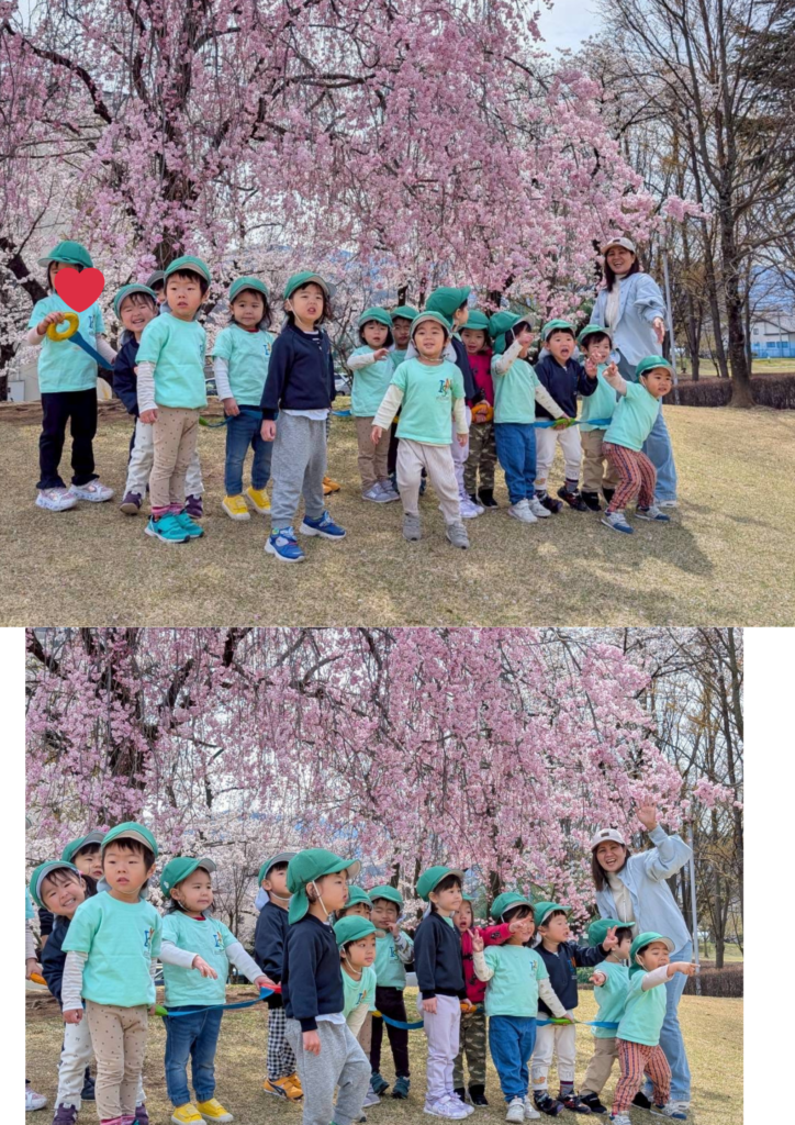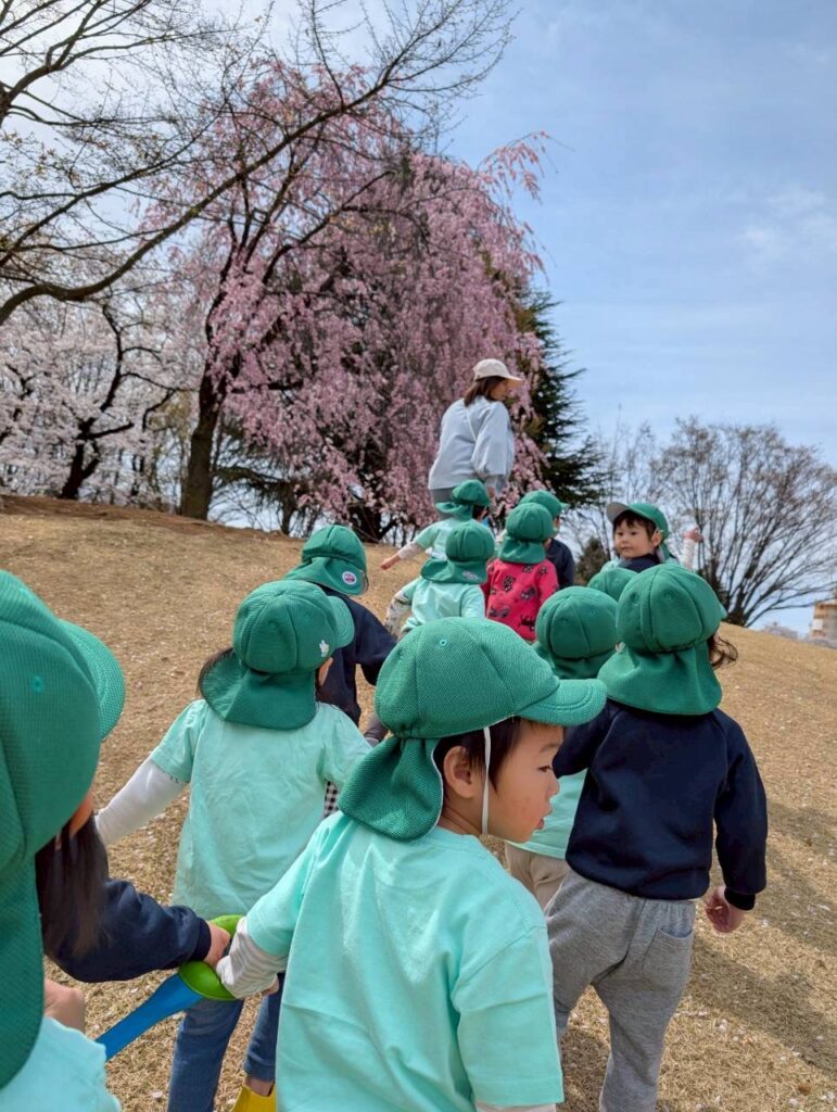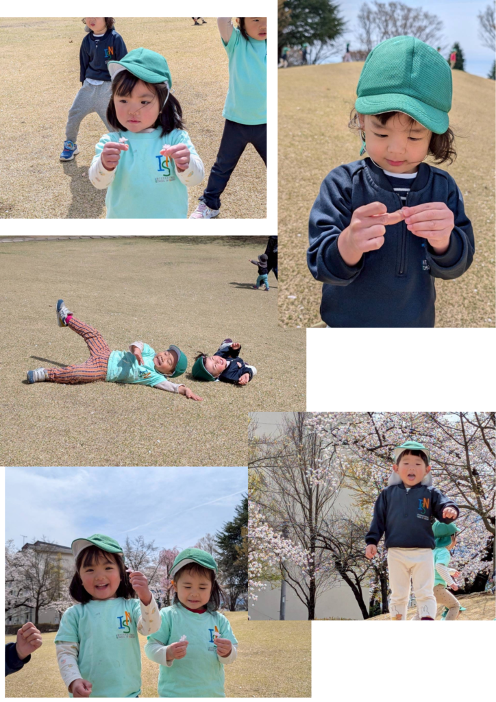 When we arrived, the children were amazed by the beautiful cherry blossoms in full bloom. We were very lucky to visit at just the right time and enjoy such a lovely sight together. The students loved collecting fallen petals and flowers, taking in the beauty of the season.
