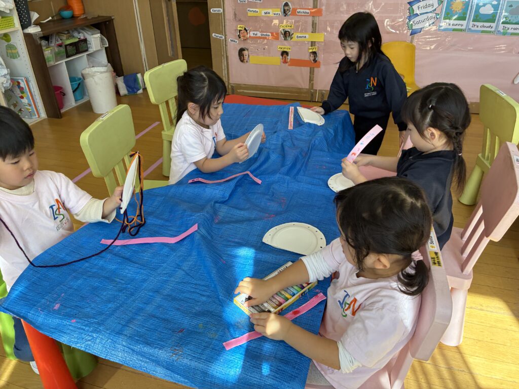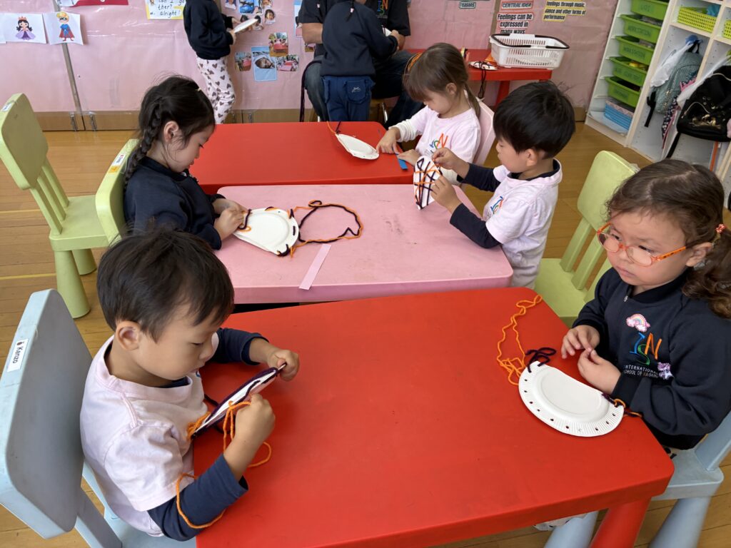 The students had fun making their Halloween bags and used yarn to thread around the edges to decorate them.