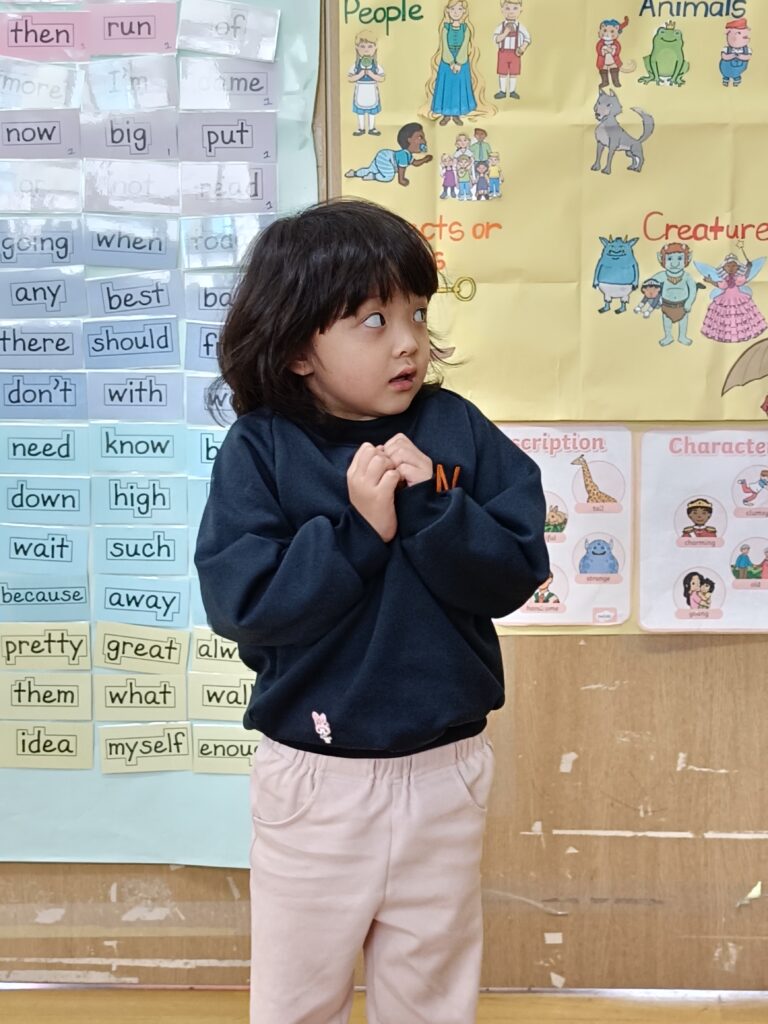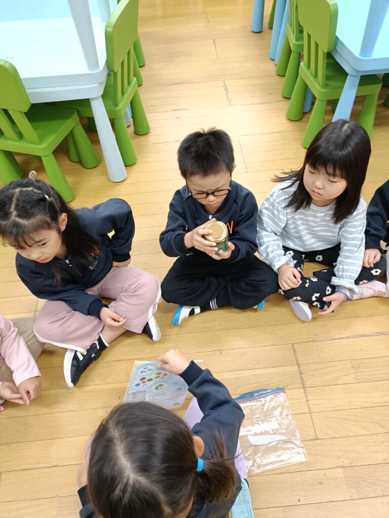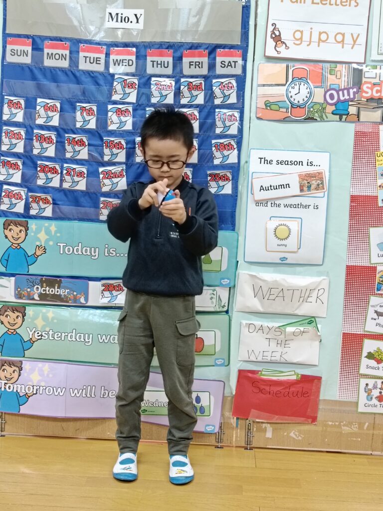 This week’s show and tell sessions were exciting.We listened to our friends talk about their favorite toys and things they made with their parents at home. Someone made water dumpling jelly with their dad!