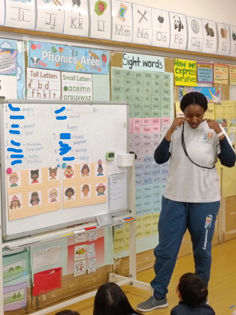 Hello everyone! Our week began with an inquiry into “story styles(genre)”, as the other element of stories. The students took turns to act out emotions and feelings in front of their peers and then labelled pictures that showed various feelings. Some of the words they used to label the pictures include, angry, sad, worried, scared, happy, excited, surprised,thinking(pensive) and sleepy(bored).