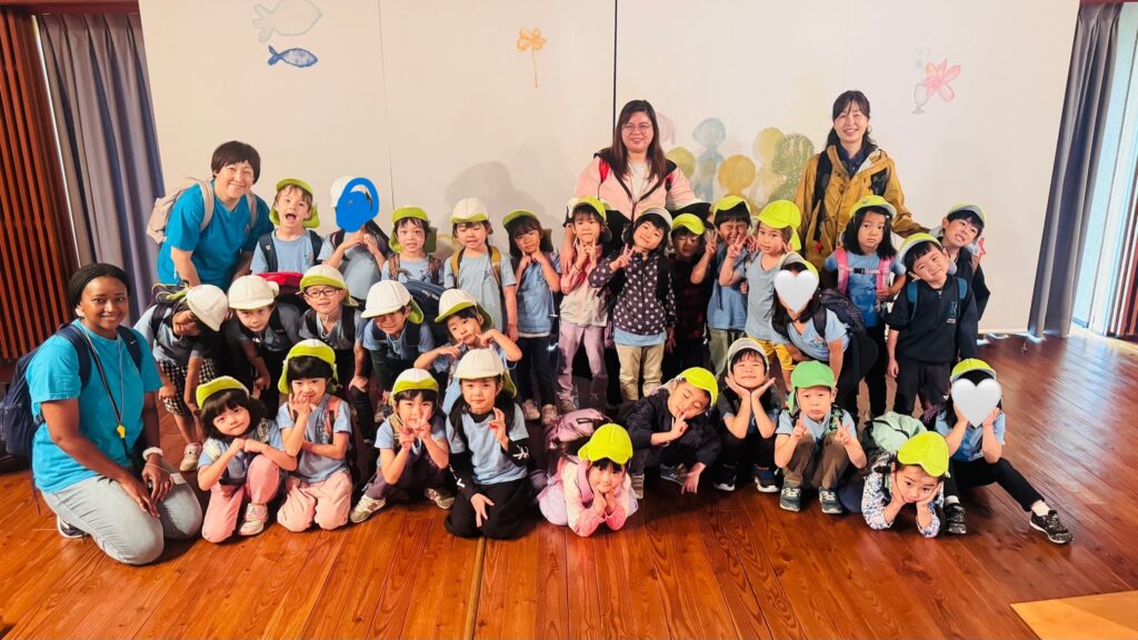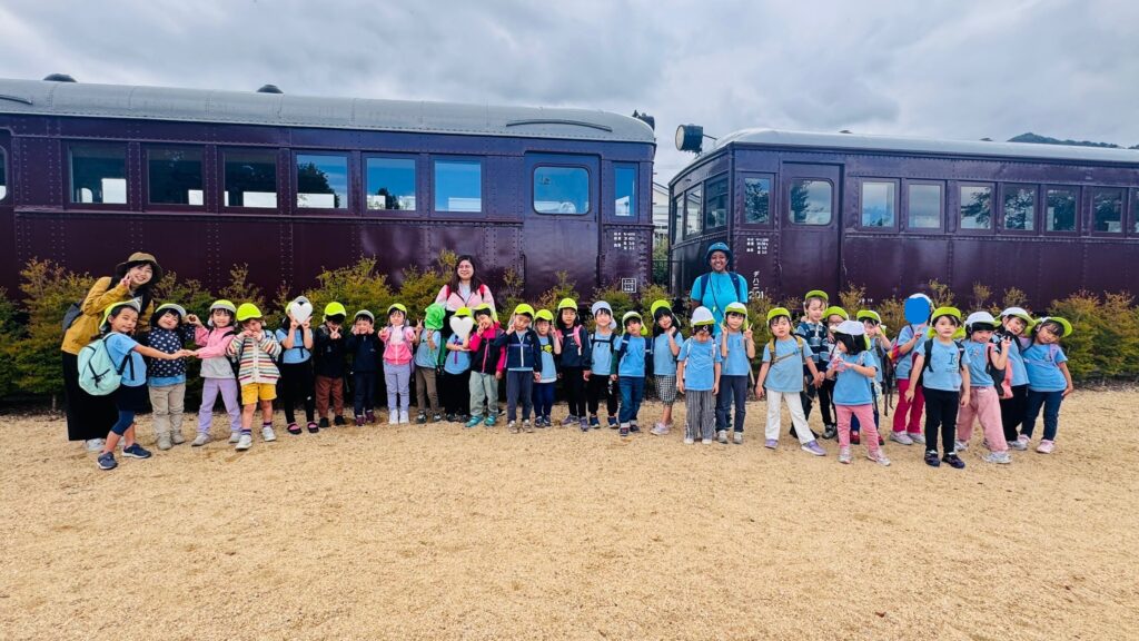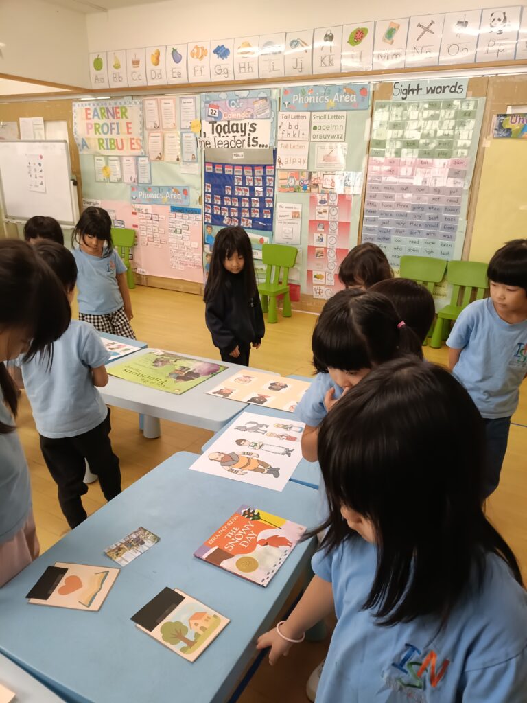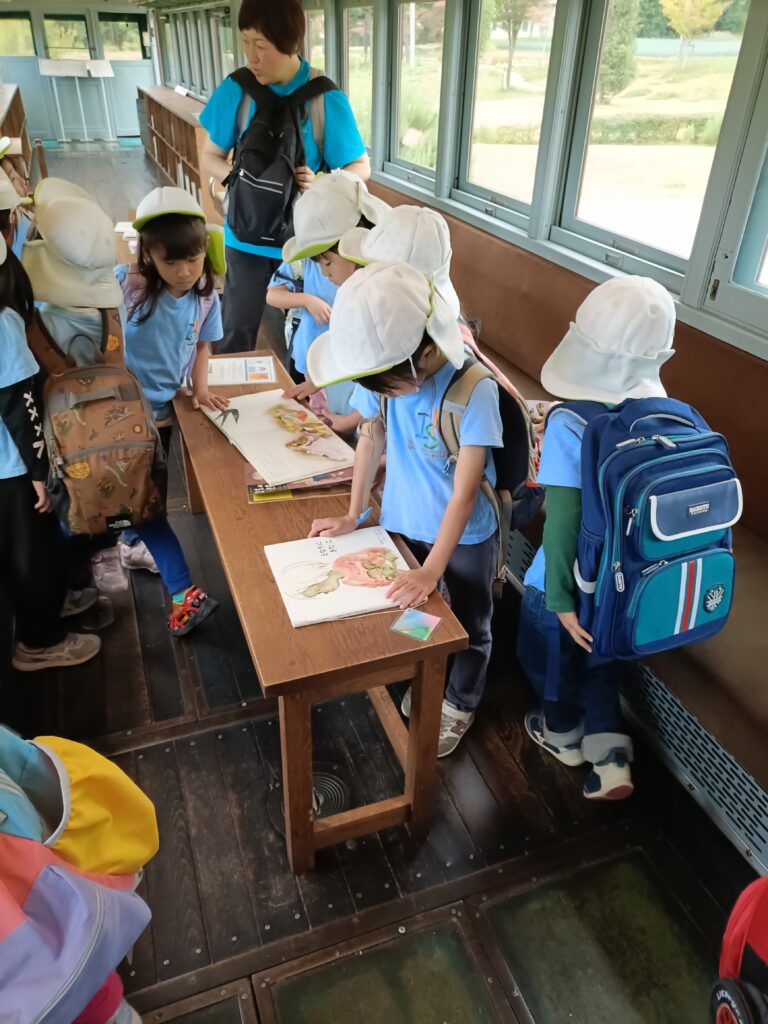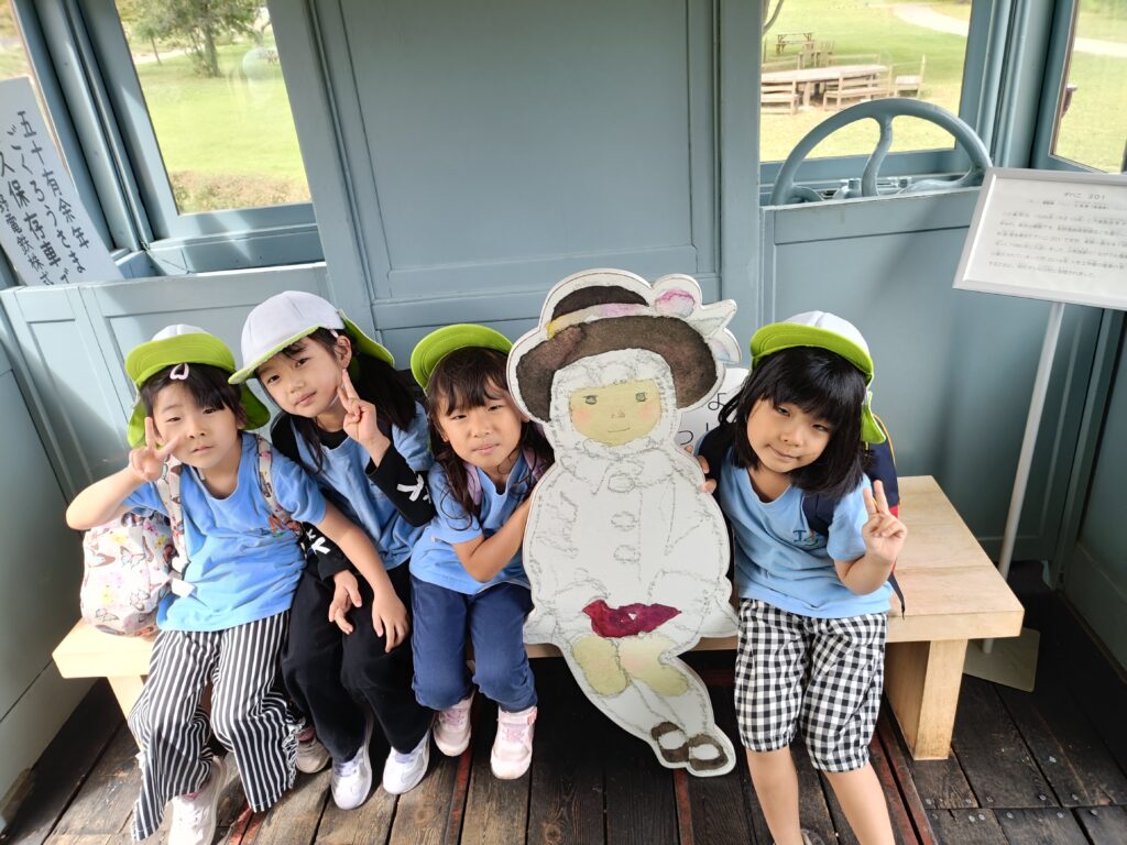 The autumn bus trip made this week super special. We first enjoyed listening to stories read by a lady who works at Chihiro museum . We then toured the museum and looked at interesting pictures and books. After this we went to the train library where the were vintage books and cute puppets from famous folktales. This was followed by eating our tasty bentos and then playing freely.