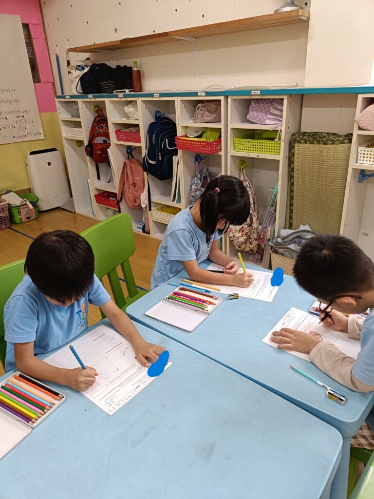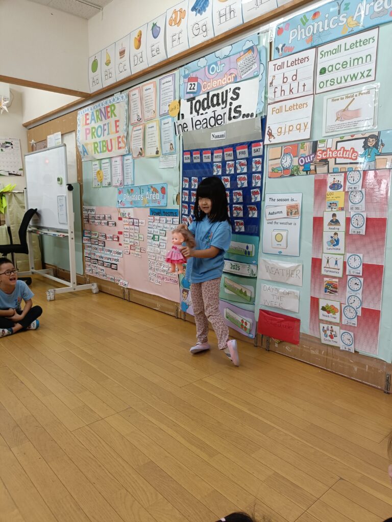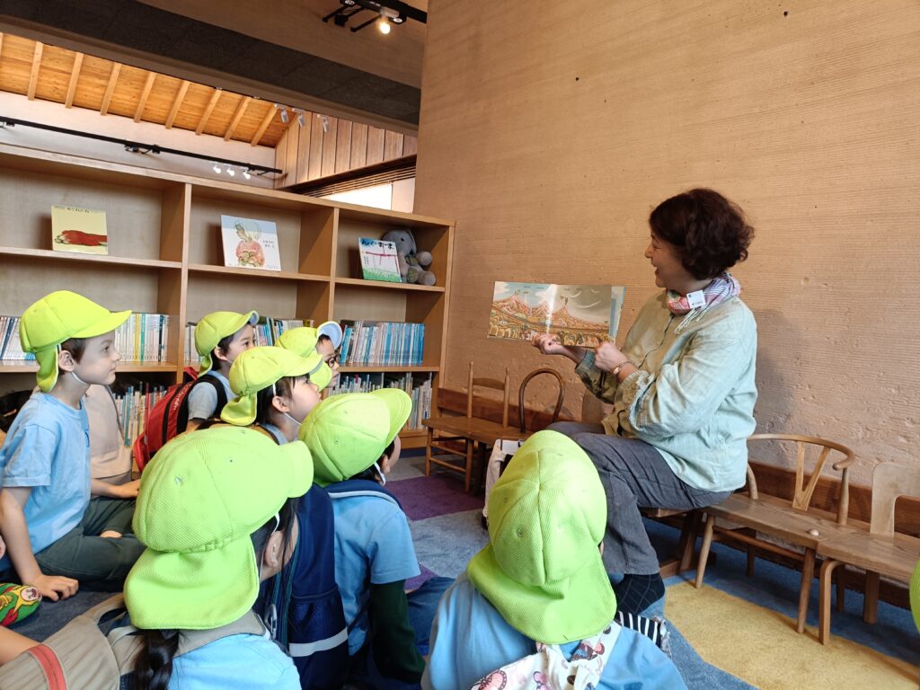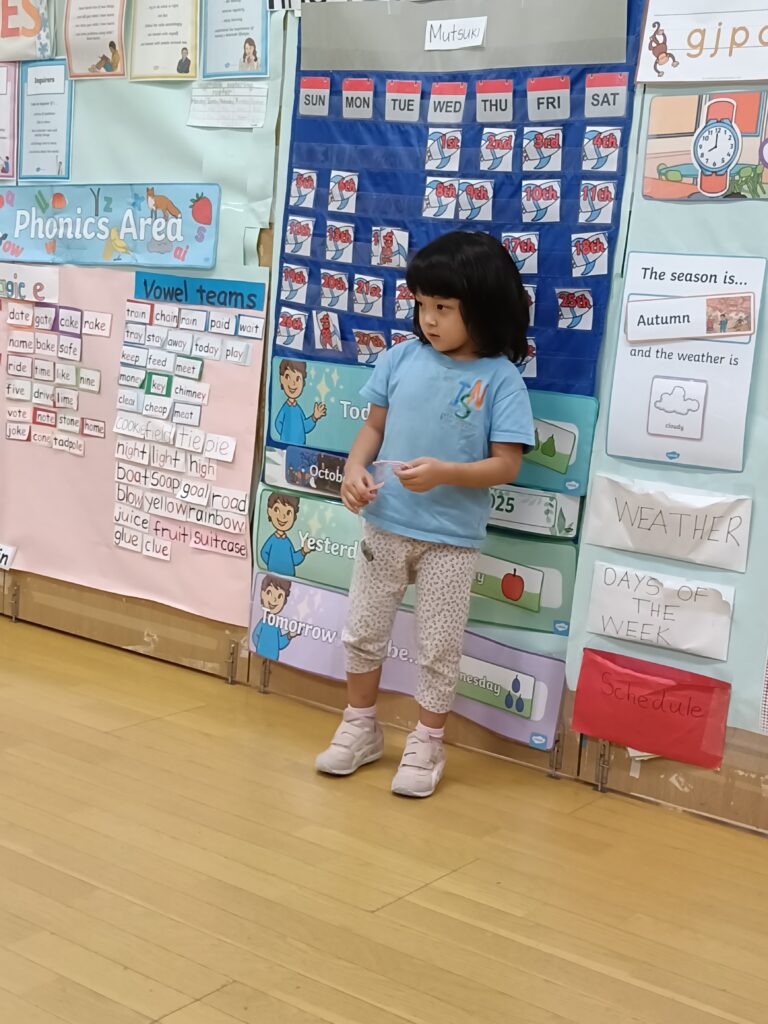 The autumn bus trip made this week super special. We first enjoyed listening to stories read by a lady who works at Chihiro museum . We then toured the museum and looked at interesting pictures and books. After this we went to the train library where the were vintage books and cute puppets from famous folktales. This was followed by eating our tasty bentos and then playing freely.