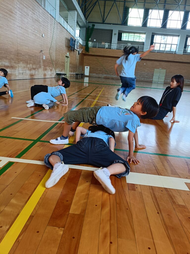 The gym teacher made the lesson fun for the students by teaching them fun gymnastic moves.
