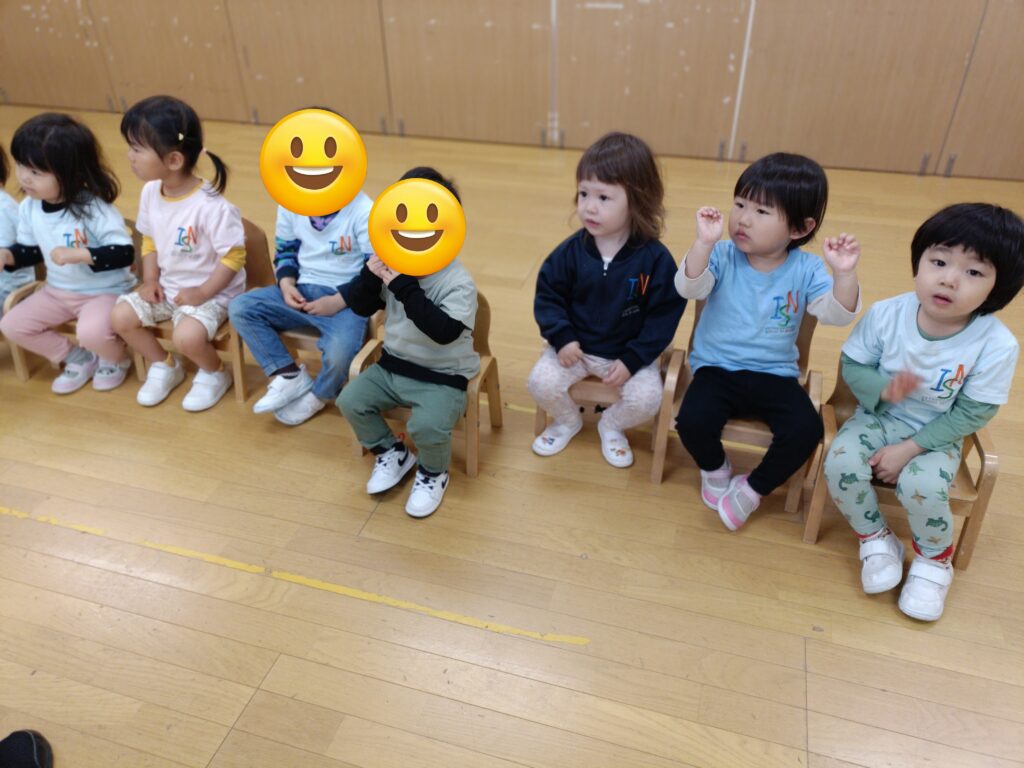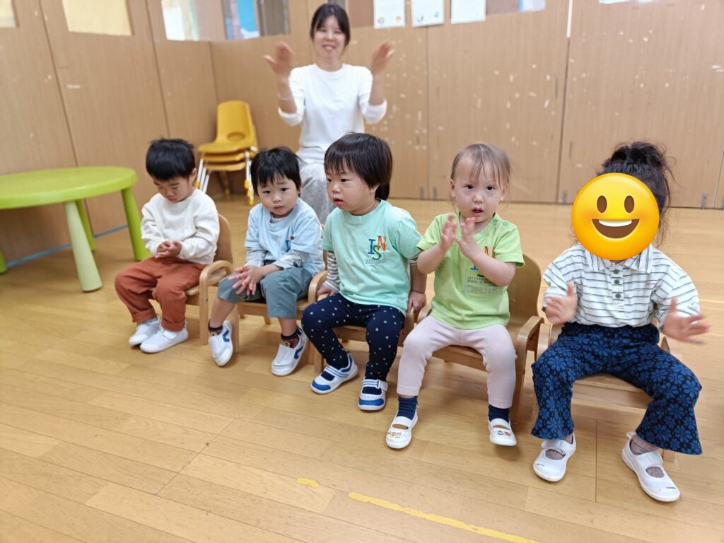 今週は、ピアノのリズムに合わせて手をたたいたり、「いとまき」や「ぞうさん」などの有名な童謡を歌ったりして楽しみました。