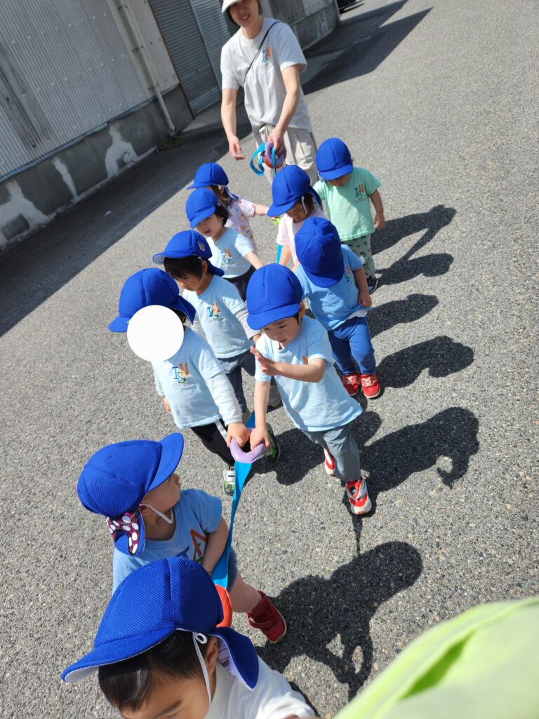 リングを使っておさんぽの練習!リングを持つことで、みんなでまとまって移動することができ、安全に楽しく歩くことで自信がつきます。