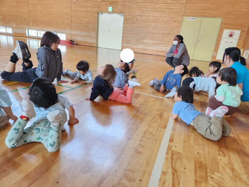 ジムレッスンでは、ジャンプしたり、バランスをとったり、体を伸ばしたりと、遊びを取り入れながら楽しく練習しました。