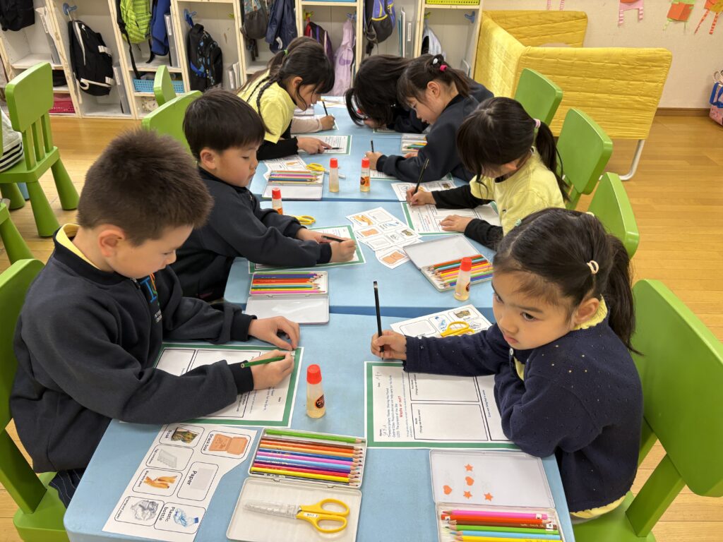 We conducted an earthquake drill, where our five Milky Way students showed great responsibility by leading the safety reminder “o-ha-shi-mo.” The drill went smoothly, and students demonstrated good listening and cooperation skills.