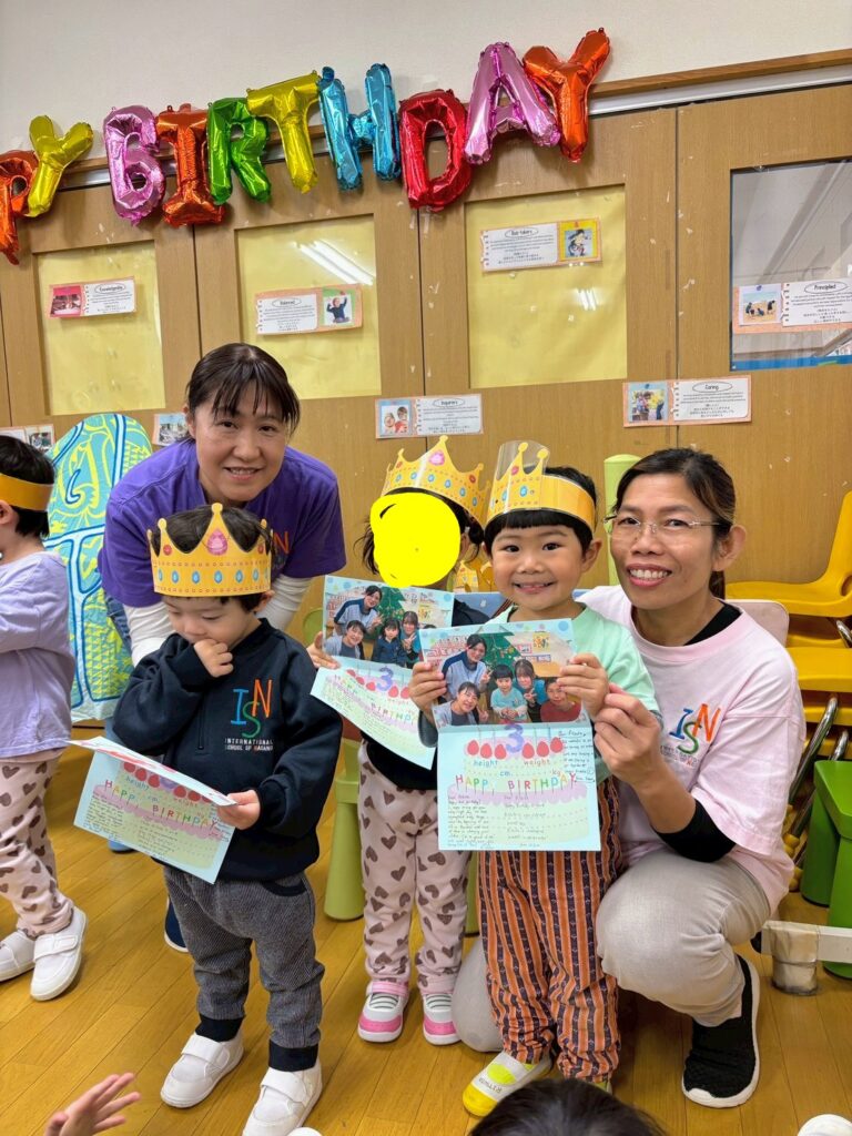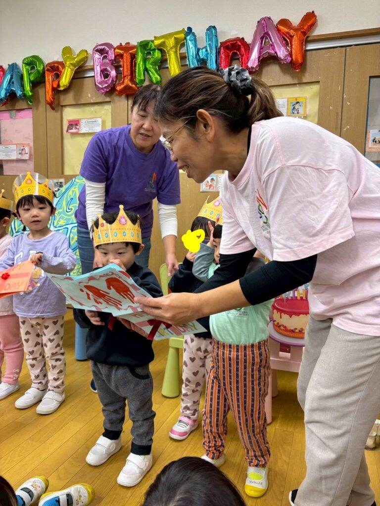 We had a Birthday celebration on Monday this week. In the Rainbow class, three children came to the front and announced their names. seeing a friend who looked a little shy. The children gently enc them by saying ” You can do it! ” Their kindness truly warmed our hearts. and with a special magic show performed by Ms.Sayuri, the birthday celebration became even more exciting and filled with laugh.