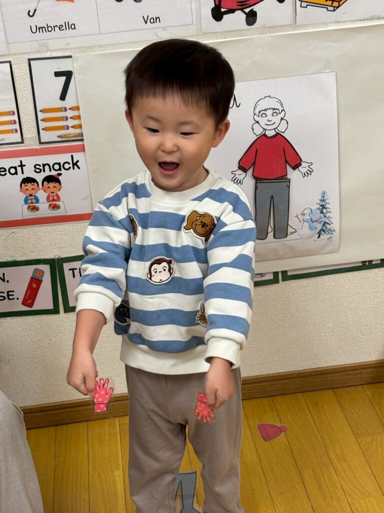 火曜日は校内でミニクリスマスショーを行いました。 当日は見られないお兄さん・お姉さんの劇を見せてもらって年上の友達に憧れる気持ちが芽生えた事と思います。