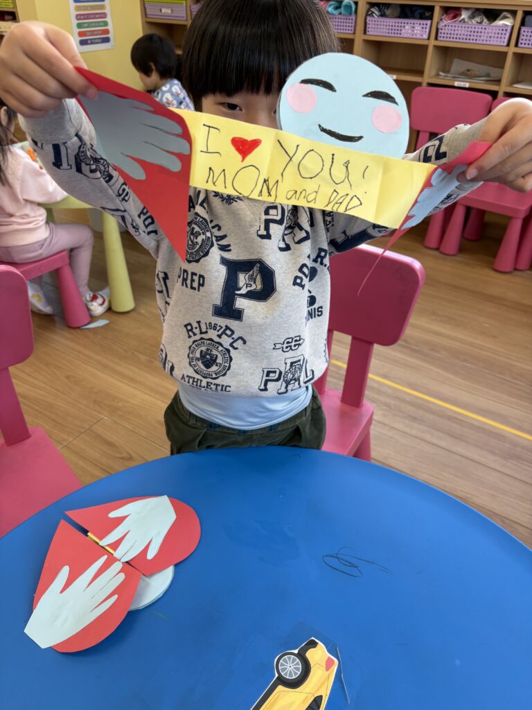 To celebrate Valentine’s Day, our classroom was filled with smiles, excitement, and lots of love! We created a very special craft for our dear Mom and Dad. They even got to choose which craft they wanted to make, which made the activity extra meaningful and fun.