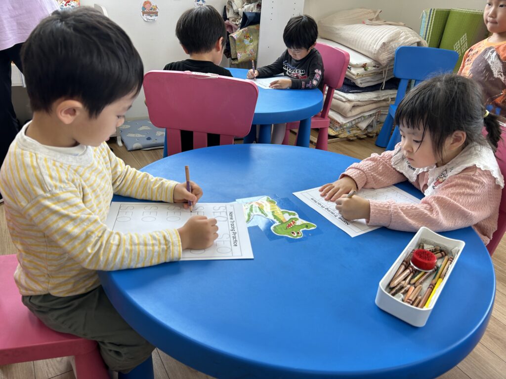 This week, we worked on coloring and tracing the letter ‘L’. We showed great progress, coloring more vividly and neatly compared to previous months, which reflects their growing focus and fine motor skills. We also practiced writing our names, paying attention to the correct stroke order. While some children are still working on writing the letters in sequence, they are making steady progress with guidance and practice.