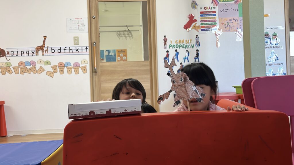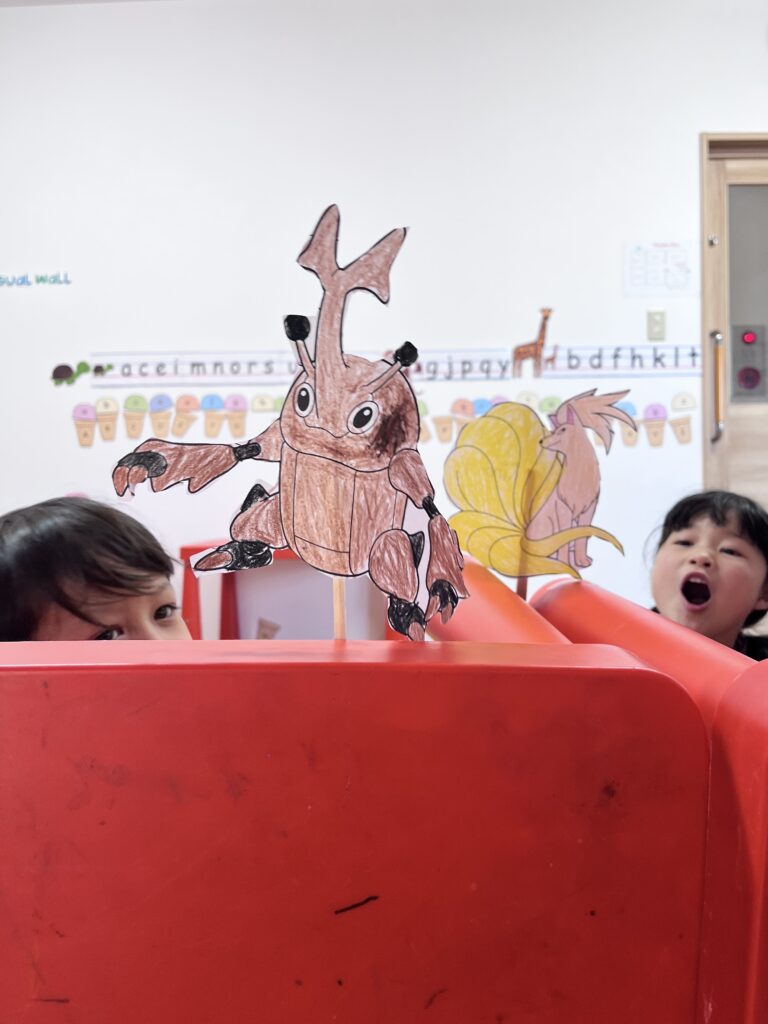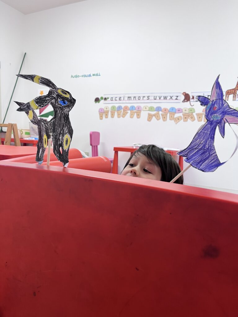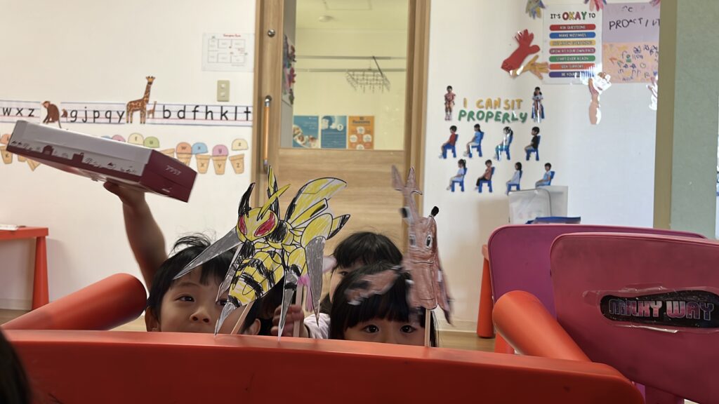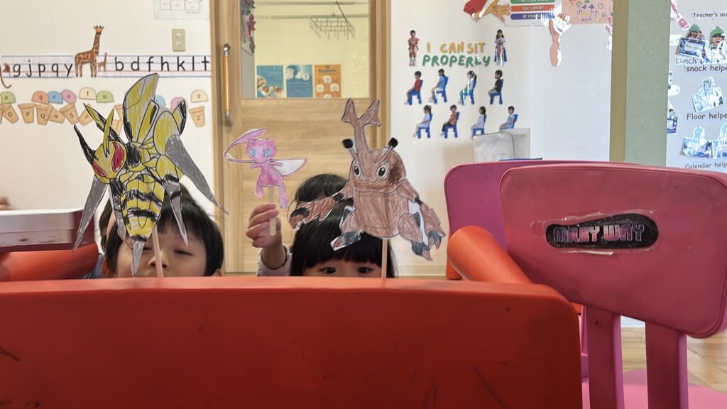 We also tapped into our creativity this week. The children are currently very fond of coloring and Pokémon, so we turned that interest into a fun activity: our very own puppet show titled “The Scary Pokémon World.” The students created their characters, used their imagination, and performed a playful story filled with excitement and teamwork. It was wonderful to see their creativity come alive!