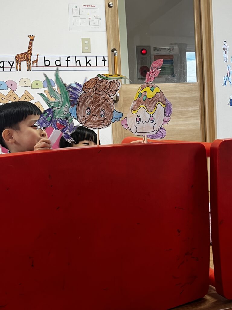 Each day featured a different theme inspired by the children’s favorite characters. We enjoyed original puppet shows starring Pokémon, Precure, Sumikko Gurashi, and many more beloved characters. The children carefully colored their chosen characters, attached sticks to the back of the paper, and—voilà!—their puppets were ready for the stage.