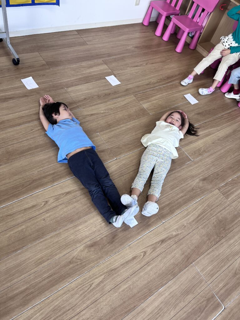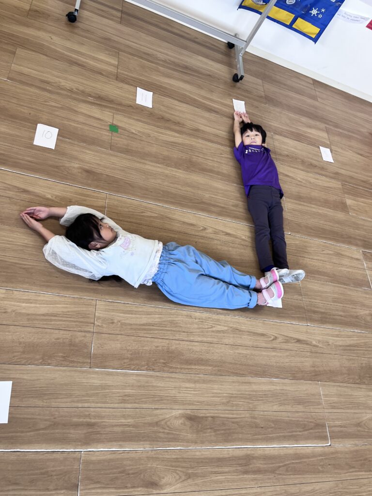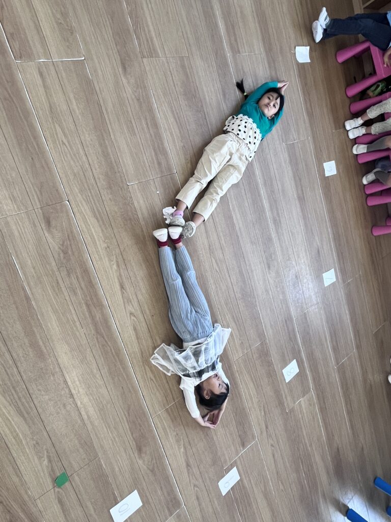 To make our learning more active (and a little silly!), we worked with a partner to make a human clock! One student became the hour hand and the other became the minute hand—depending on who was shorter or taller. Lying down on the floor and moving our arms to show different times helped us communicate, cooperate, and understand time in a fun, hands-on way.