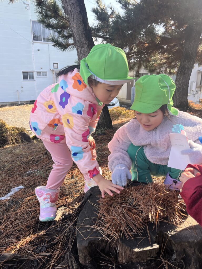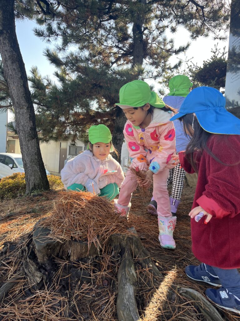 We ended the week by spending time at the park and the school playground. The children enjoyed picking up pine cones and collecting pine leaves, using them as pretend pasta and bird’s nests during their play.