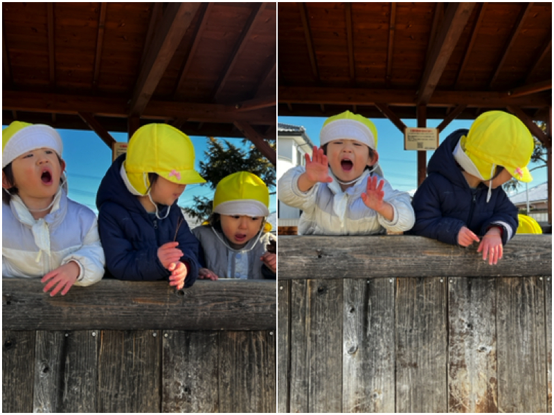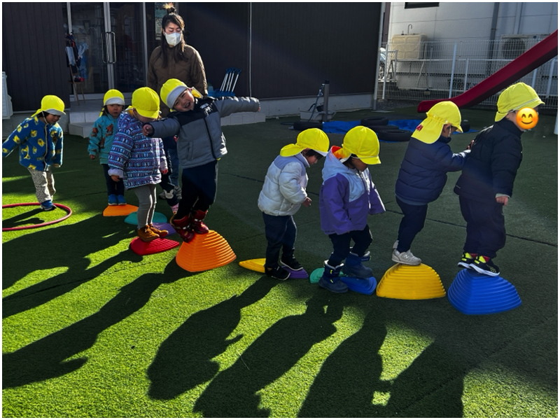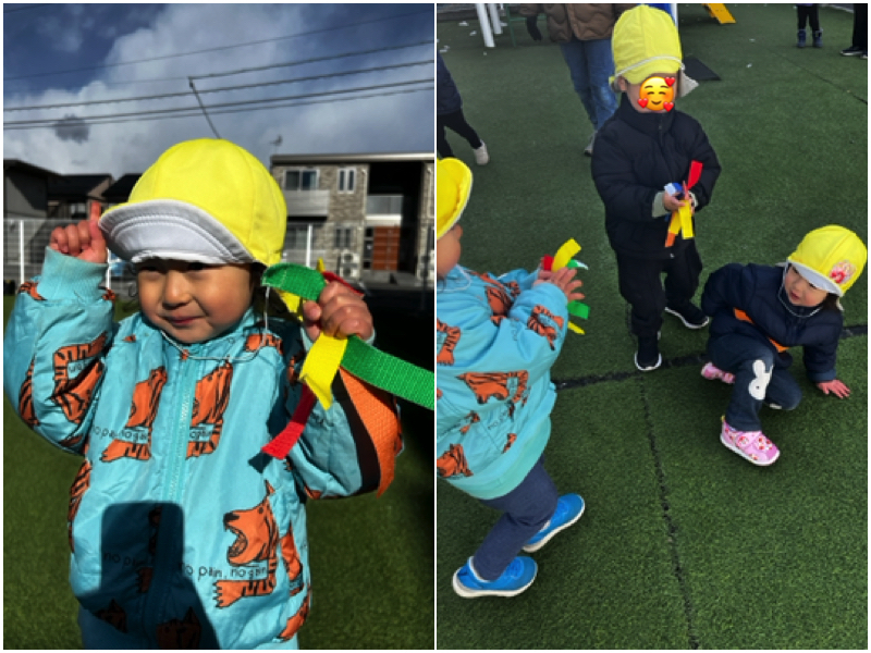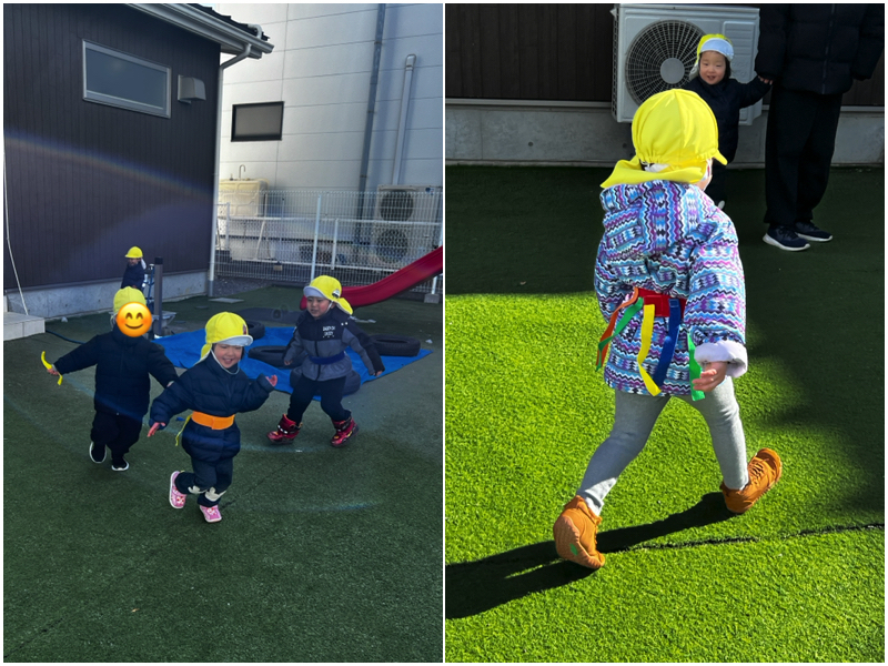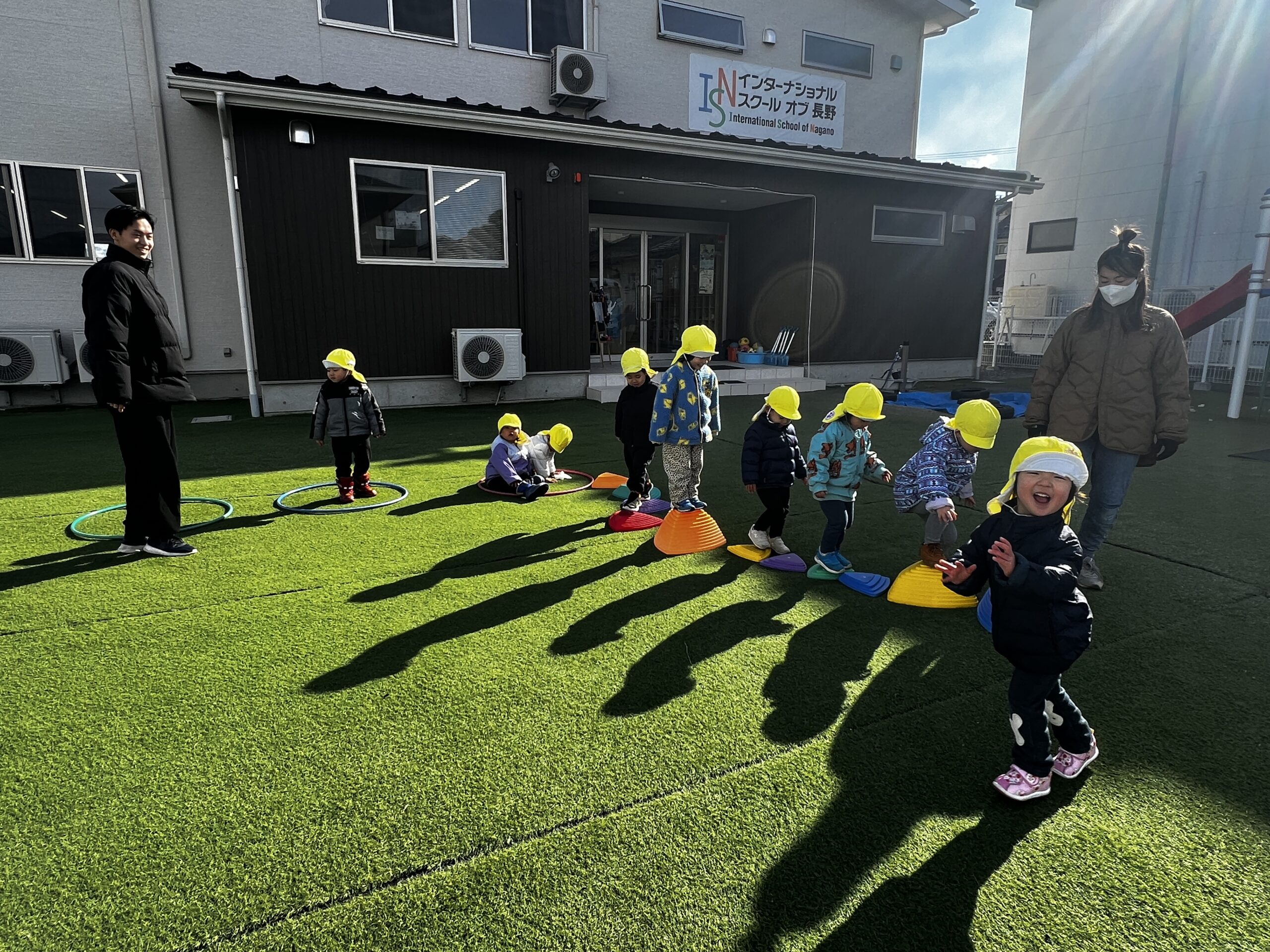In gym class, everyone stayed active with movement games. We practiced jumping, balancing, and running through obstacles courses. These activities support their gross motor development while keeping everyone moving and smiling. Moving also kept their bodies warm this winter so the cold didn’t bother them at all.