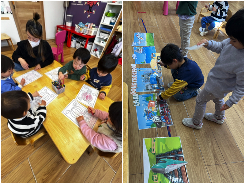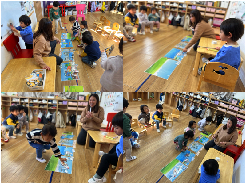 Our transportation theme kept everyone engaged and curious. We learned about different types of transportation. Everyone had fun sorting vehicles by air, sea and land. Kids had fun identifying the names of the vehicles and we learned the sounds too. We also learned songs related to our theme, we read picture books about it and we got creative when we colored the different transportation. Everyone is very interested in this months theme. Even outdoors kids love looking for different transportation they especially like looking at construction vehicles luckily we saw some in real life.