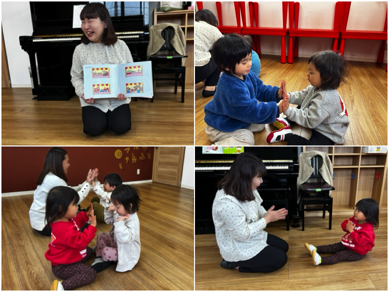 During music time kids practiced clapping their hands to the beat. Then they paired up with a friend and moved their hands to the beat too. After that everyone moved around the room to the beat. This interactive way of learning help kids become more coordinated while having fun.