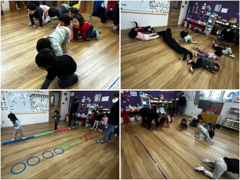 In gym, since it was a rainy day we had it indoors. Everyone got active inside the classroom lots of movement were done.