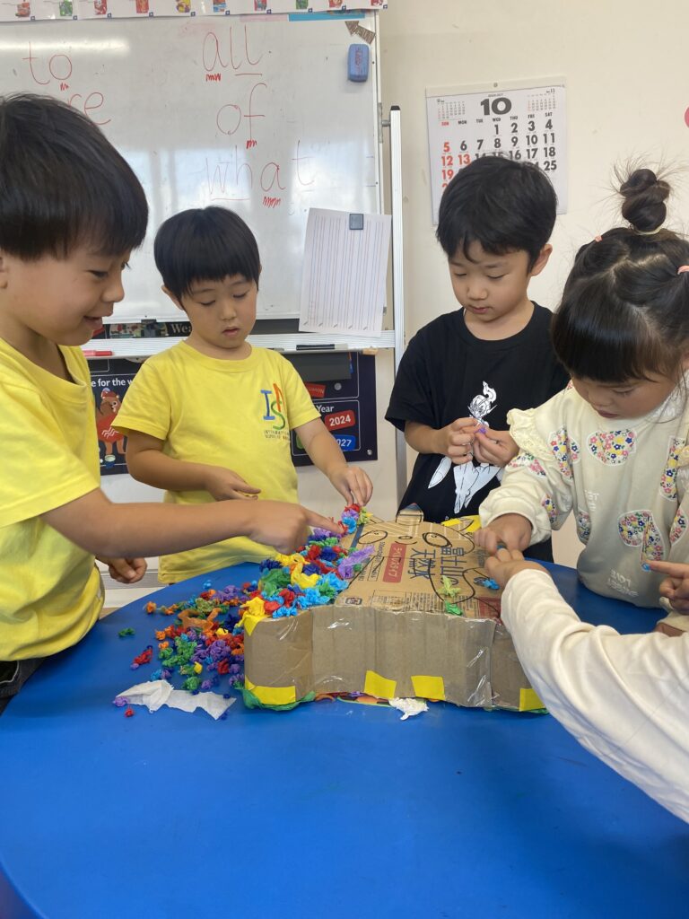 Some of us weren’t quite sure what a piñata was at first, so we learned all about it. Piñatas come from Mexico and have been part of celebrations and festivals for hundreds of years. They’re colorful paper decorations shaped like animals, stars, or even favorite characters — but they’re not just for looking at… they’re for smashing open!