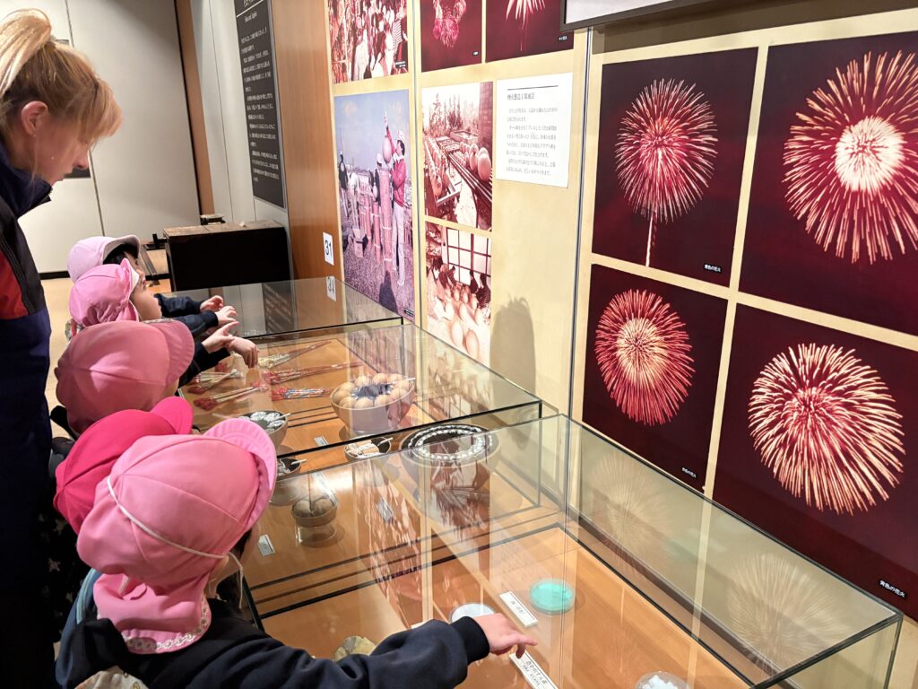 We explored displays from traditional festivals and even got to see what the inside of old-fashioned fireworks looks like—It was very interesting! 🎆