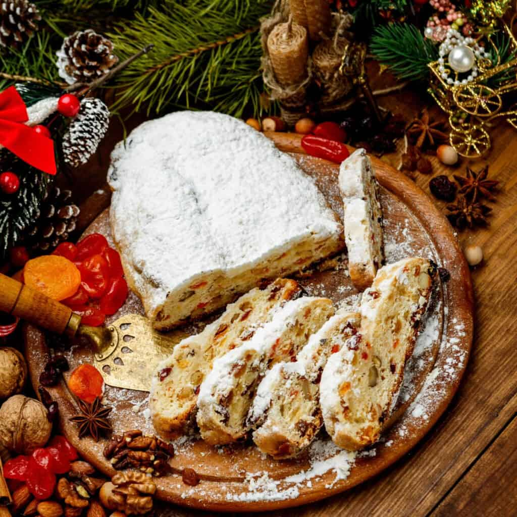 A classic German Christmas feast featuring roast goose stuffed with apples or onions, served with red cabbage, potato dumplings, and rich gravy. Sweet, powdered-sugar-covered Stollen is also a must. You can get Stollen (and the Italian pantone, also eaten at christmas) in international shops such as the ones in Aeon Mall, so we can all try some!