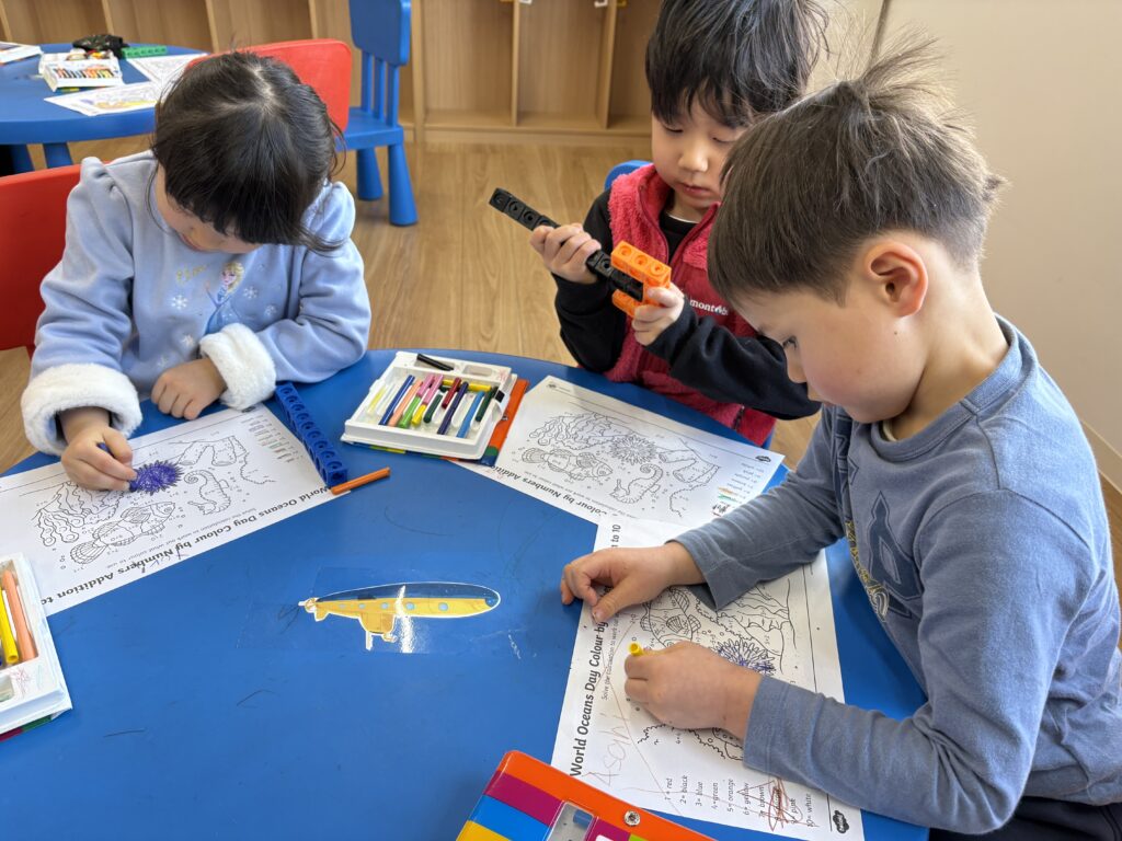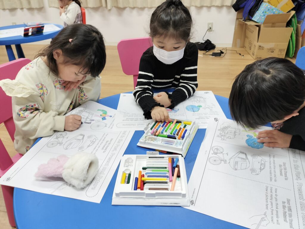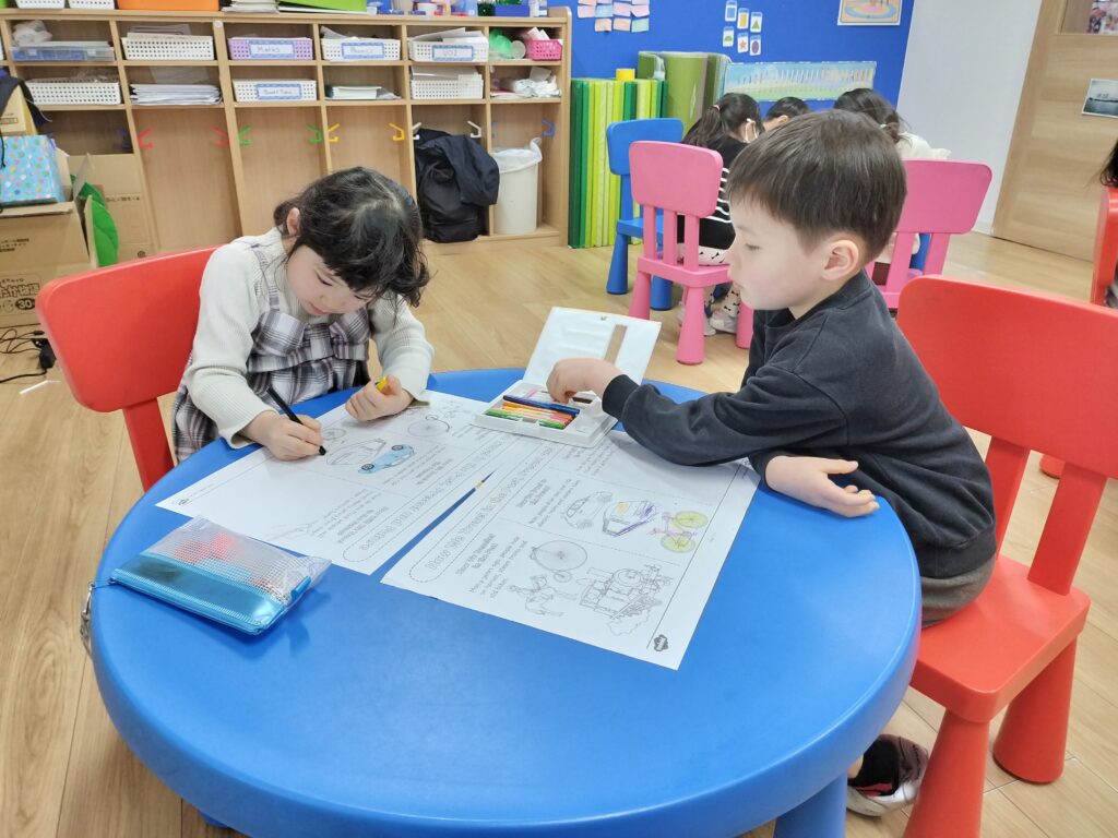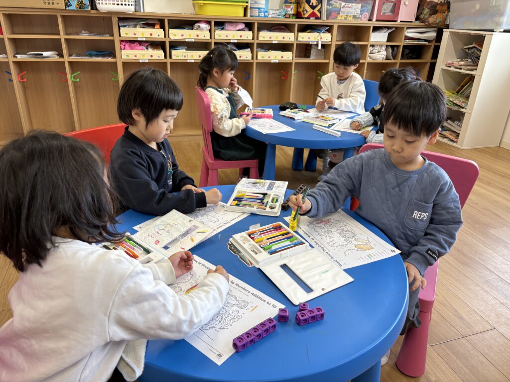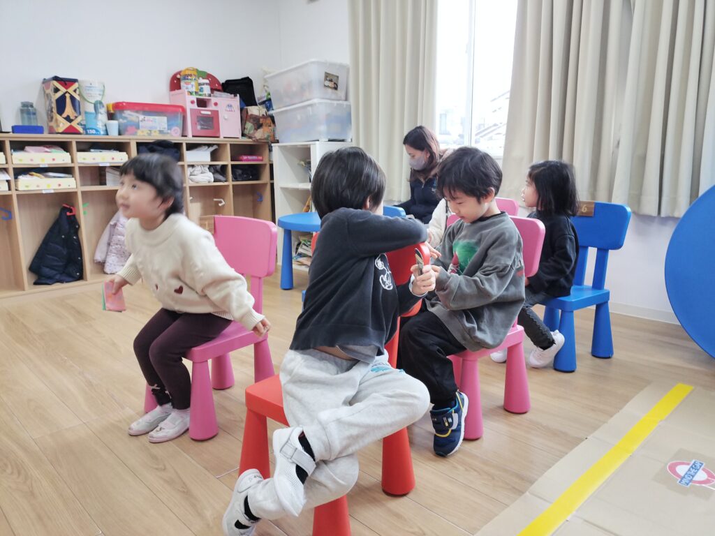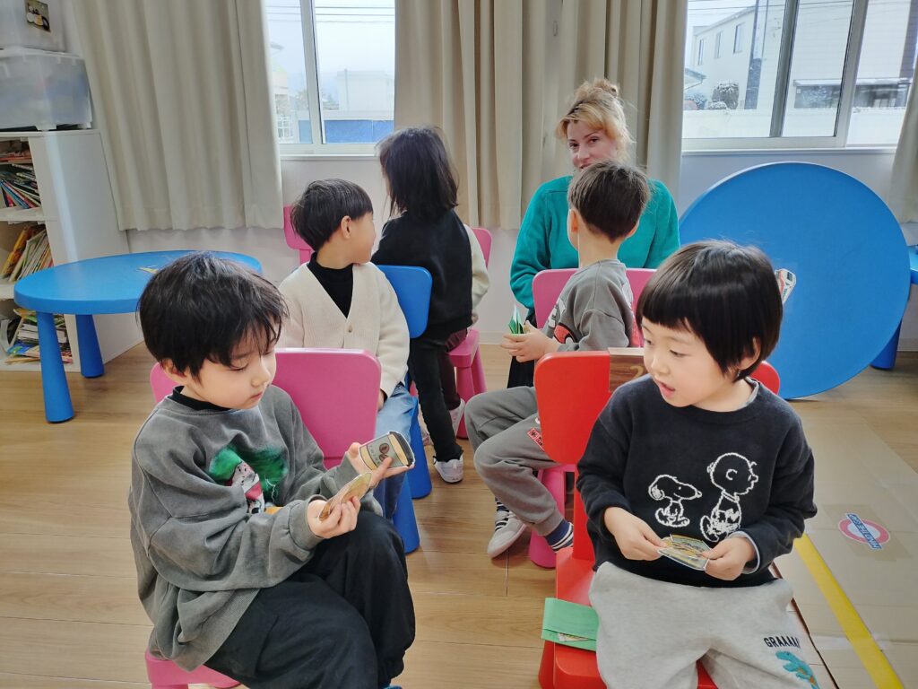 From Wednesday, we began role-playing train station situations. The children practised buying tickets, and because they loved it so much, we expanded our role-play area! We made wallets, cut out money, added a station coffee shop, set up a platform, and even had numbered seats.