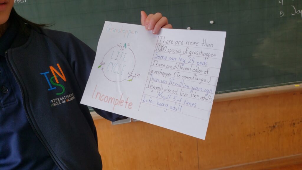 To deepen their understanding, students created posters showing the life cycle of a butterfly and a grasshopper. They carefully labeled each stage and worked to clearly show the differences between the two processes. It was great to see their understanding grow as they organized the information visually.