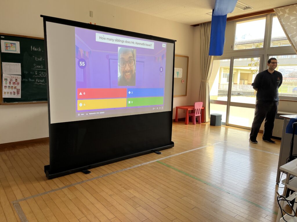 朝は、楽しいKahootクイズをしました。今年一年で学んだことや、トリビア問題もあり、とても盛り上がりました。子どもたちは楽しみながら参加していました。