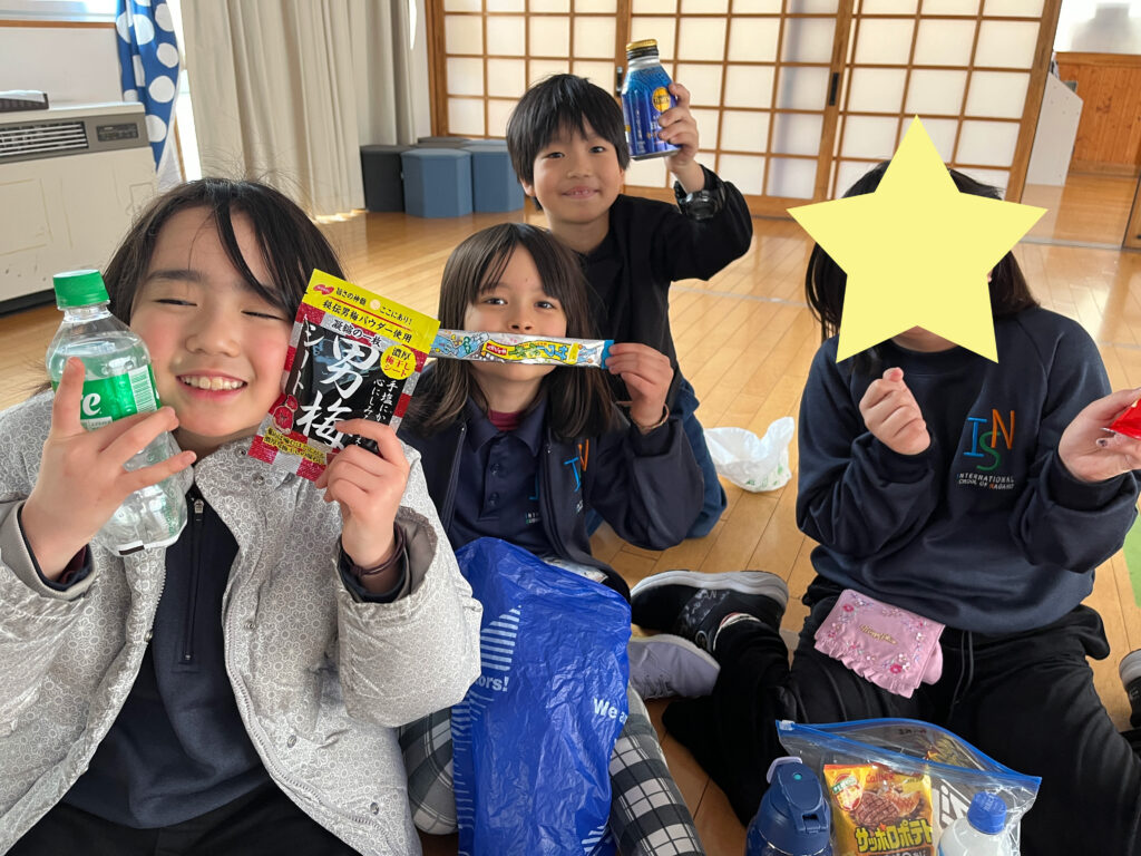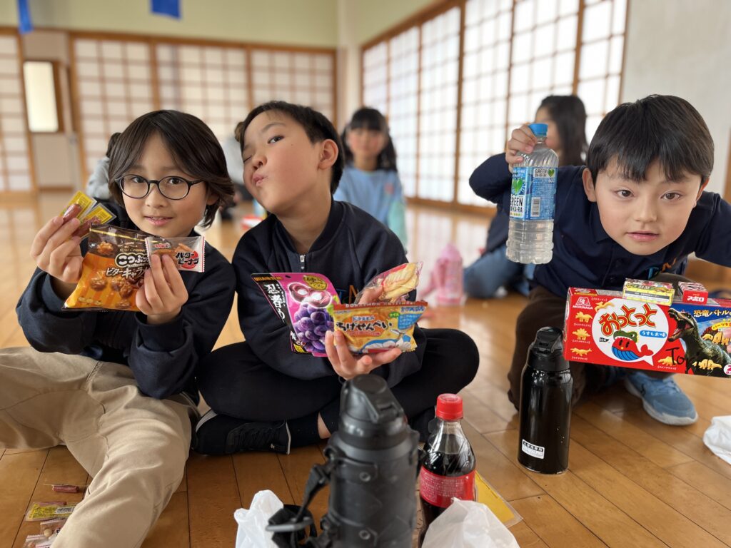 クイズの後は、家から持ってきたおやつを食べながら映画を見ました。リラックスした雰囲気の中で、これまでの頑張りをみんなでお祝いしました。