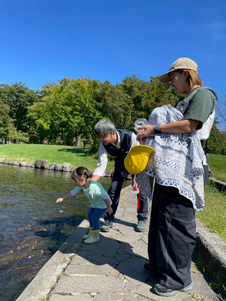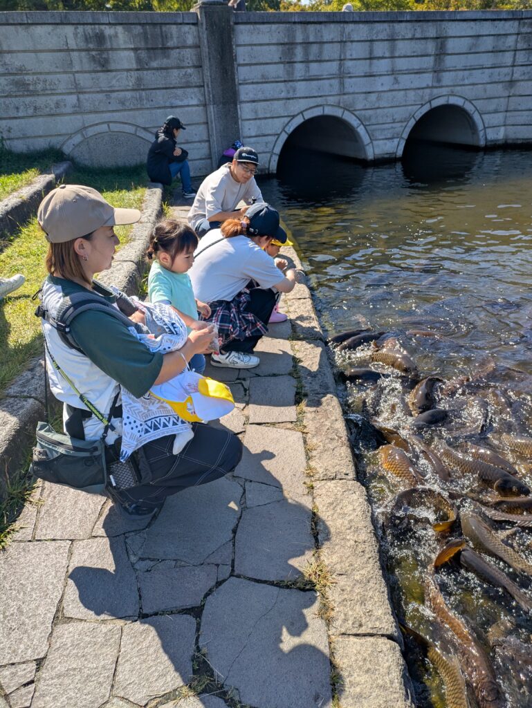 池では鯉にえさをあげたり、広い遊具で思いきり遊んだりして、みんなで楽しい時間を過ごしました。