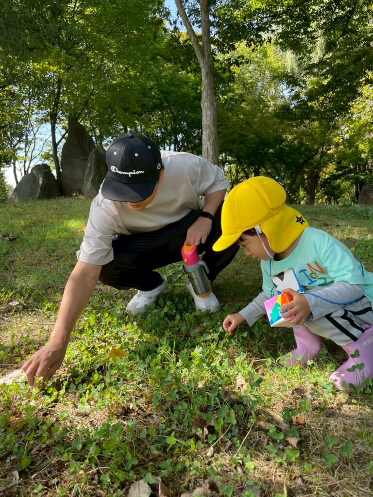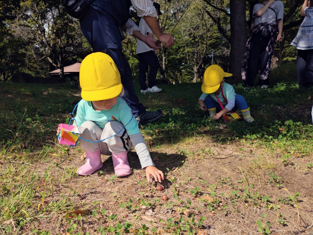 雨上がりの澄んだ空気とあたたかい日差しに包まれ、絶好のお出かけ日和。お散歩をしながら木の実や落ち葉を集め、秋の自然をたくさん見つけることができました。
