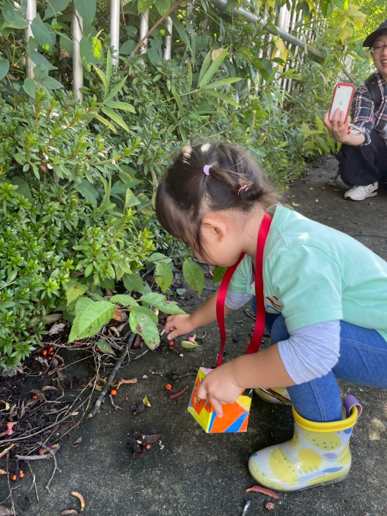 The air was fresh and clear after the rain, and the warm sunshine made it a perfect day for an outing. While taking a walk, the children enjoyed collecting nuts and colorful leaves, discovering many signs of autumn.