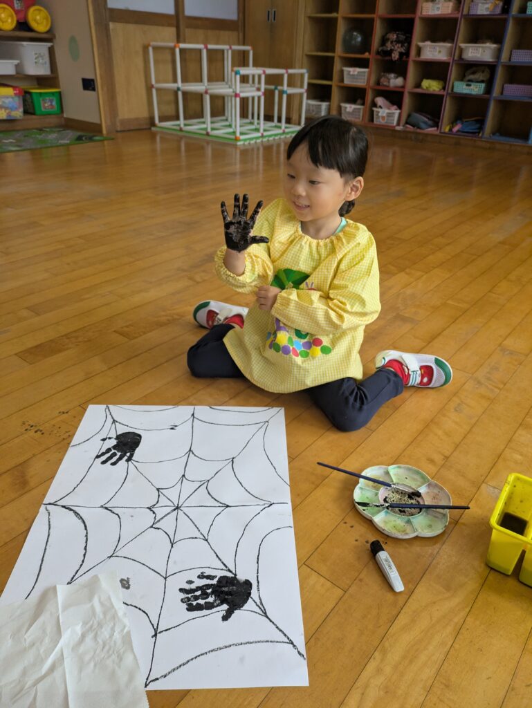 もうすぐハロウィンということで、蜘蛛の手形やミイラづくりにも挑戦!