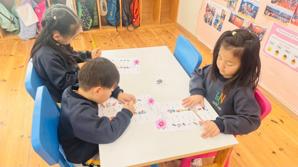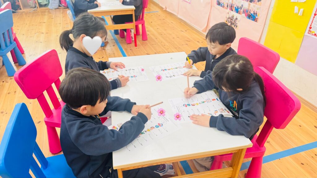In our phonics lesson, we focused on the consonant blends “ph” and “th.” We brainstormed and looked for words containing these blends and wrote them on the board. The children then watched an educational video and practiced reading different words aloud. To reinforce their learning, they completed a worksheet that helped strengthen their understanding and confidence in using these sounds.