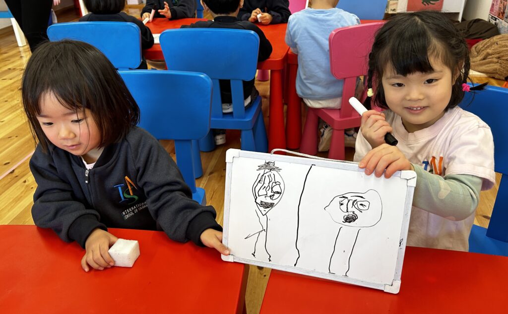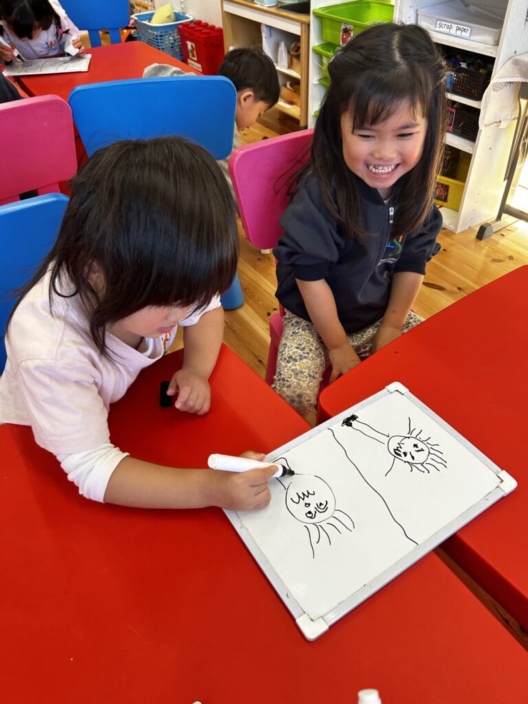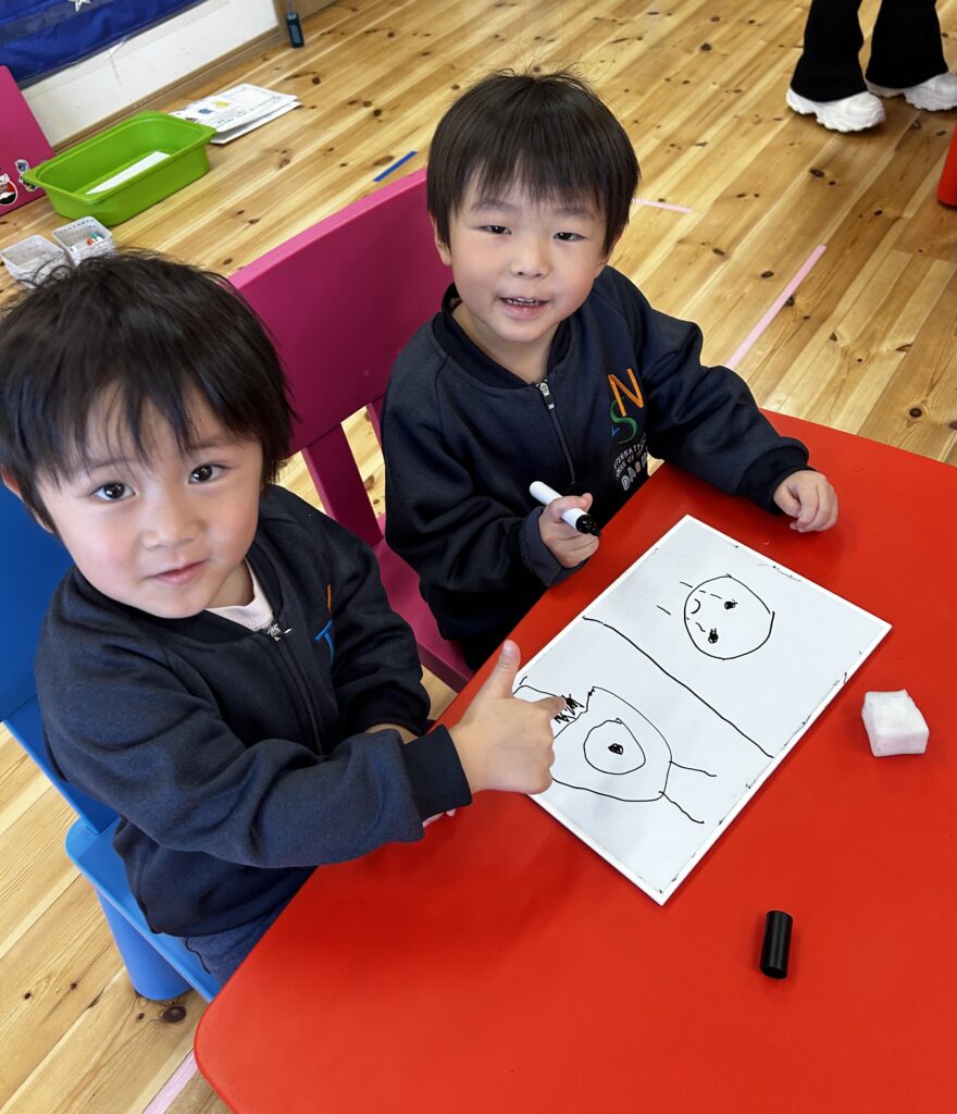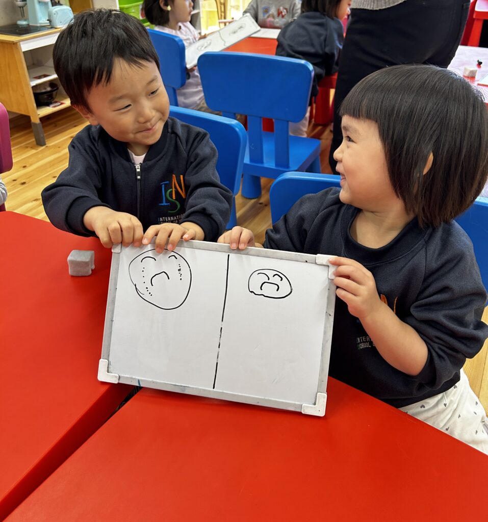 Canyon has been making drawings of feelings and describing them in detail. Look at his face, how do you know that he is sad? How can you see that she is happy? How can you show that you are angry? Canyon says: “eyebrows going up, eyebrows going down, eyes are big. Mouths turning up, mouths upside down, zigzag mouths. Mouths open, just a line… a smile “. We discovered many wonderful and creative artists in Canyon. We are so proud of Canyon!