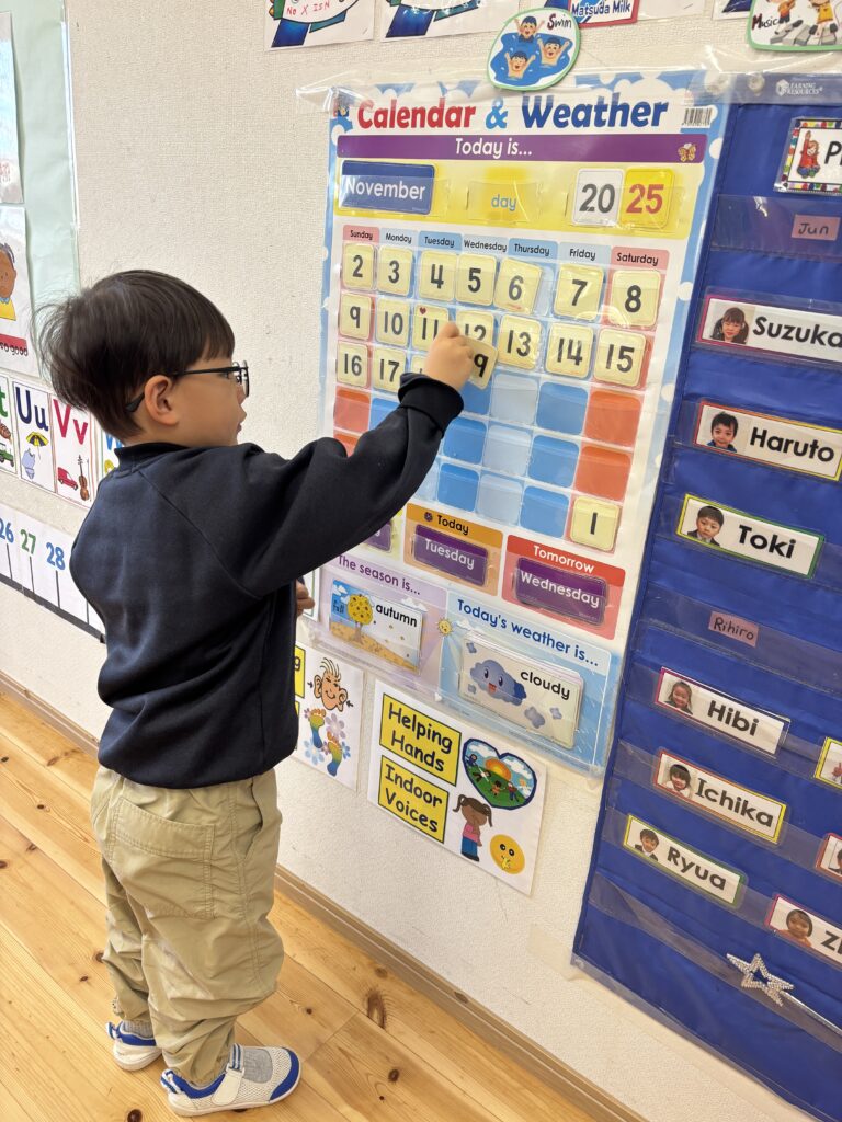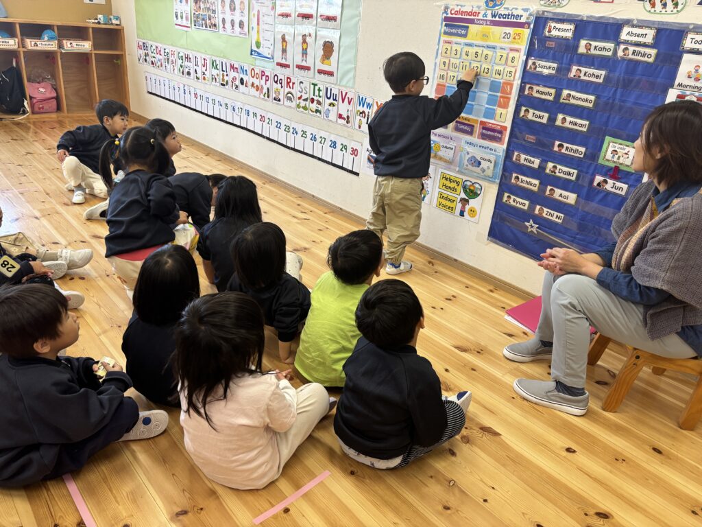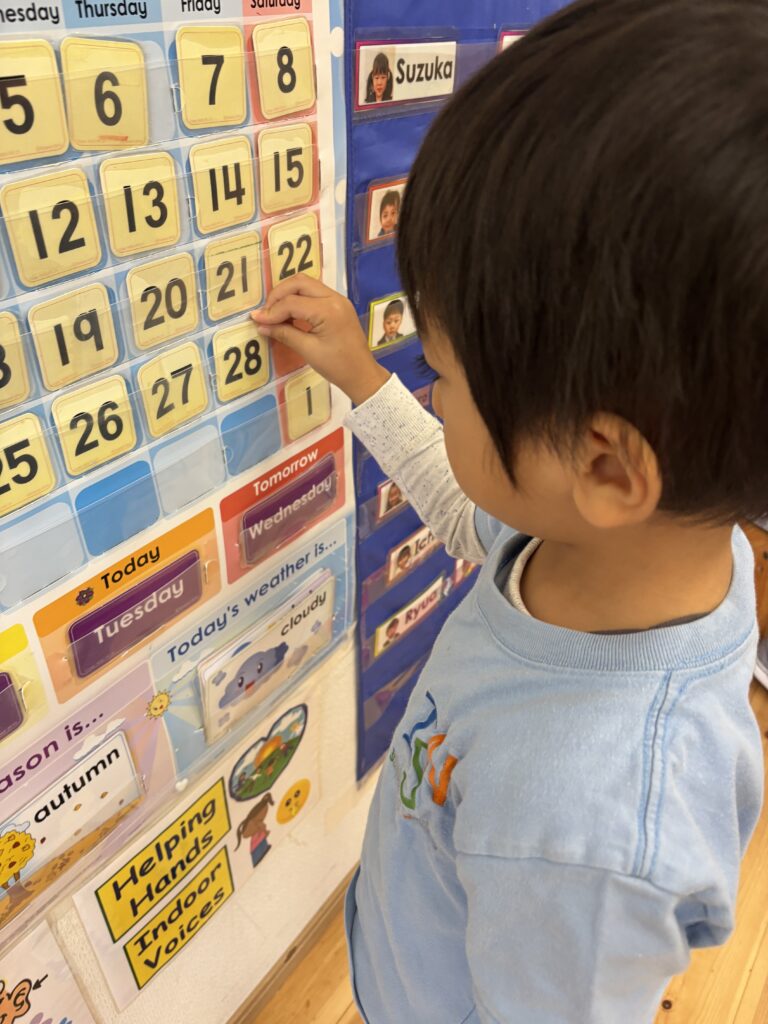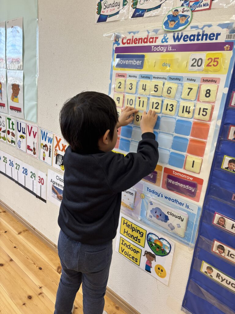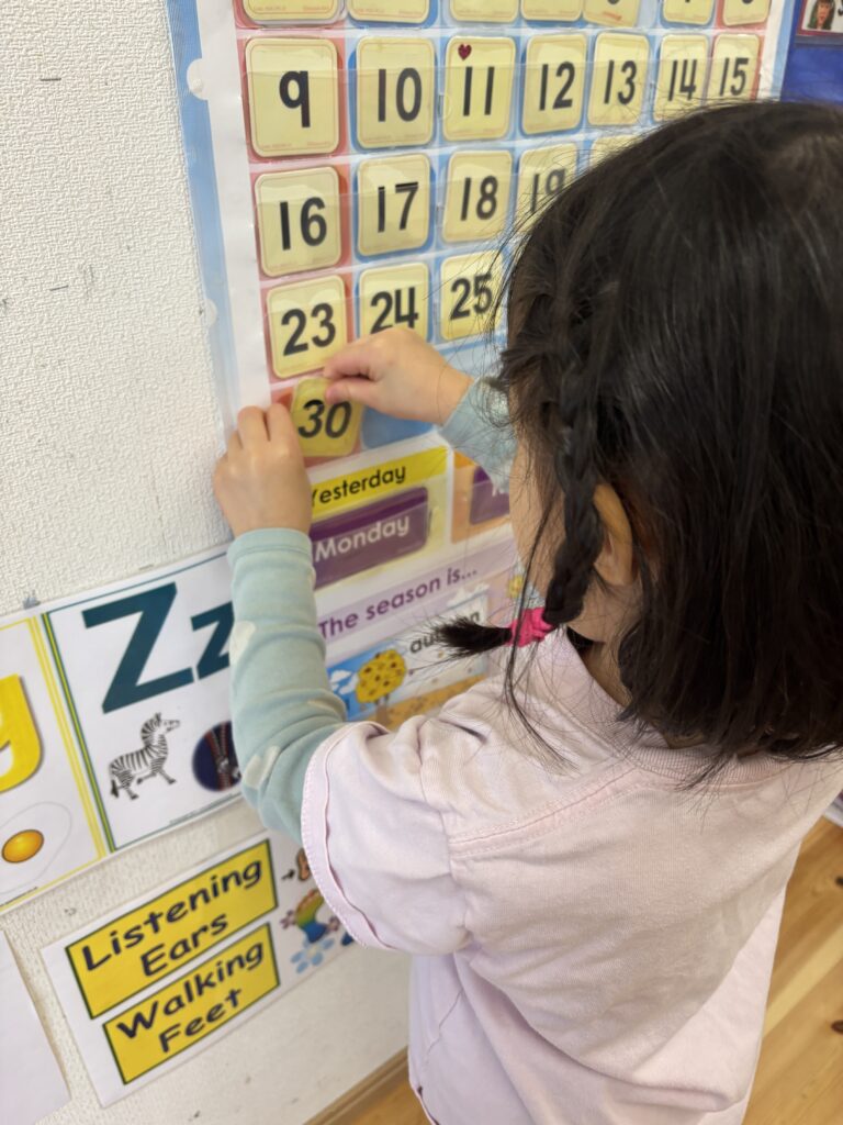It is a new month and Canyon helped with organising the calendar. This gives us the opportunity to practise counting and to find out who the birthday boys and girls are for the month! As for the weather, this week has been really foggy. The clouds are coming down to the roads and river! The class learned a new weather word ‘foggy’ – “It’s foggy today.” We have also been talking about the 12 months in a year and singing it.