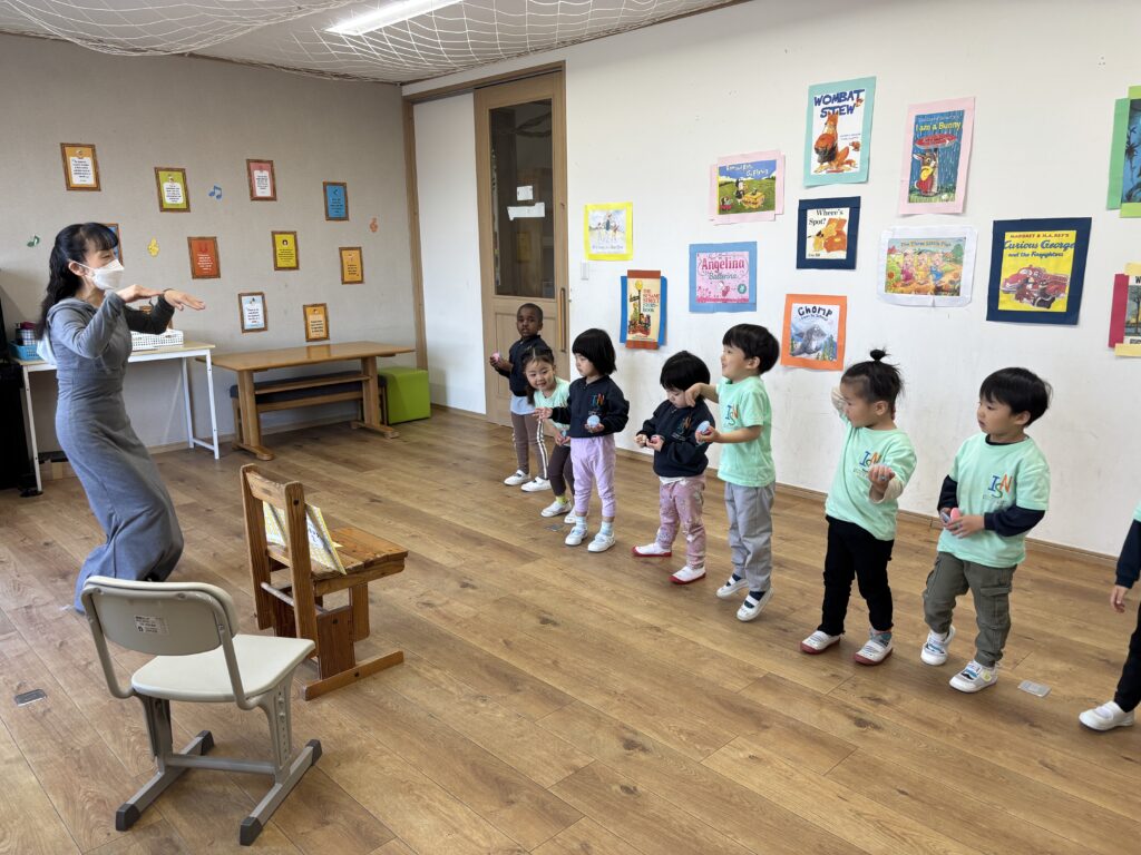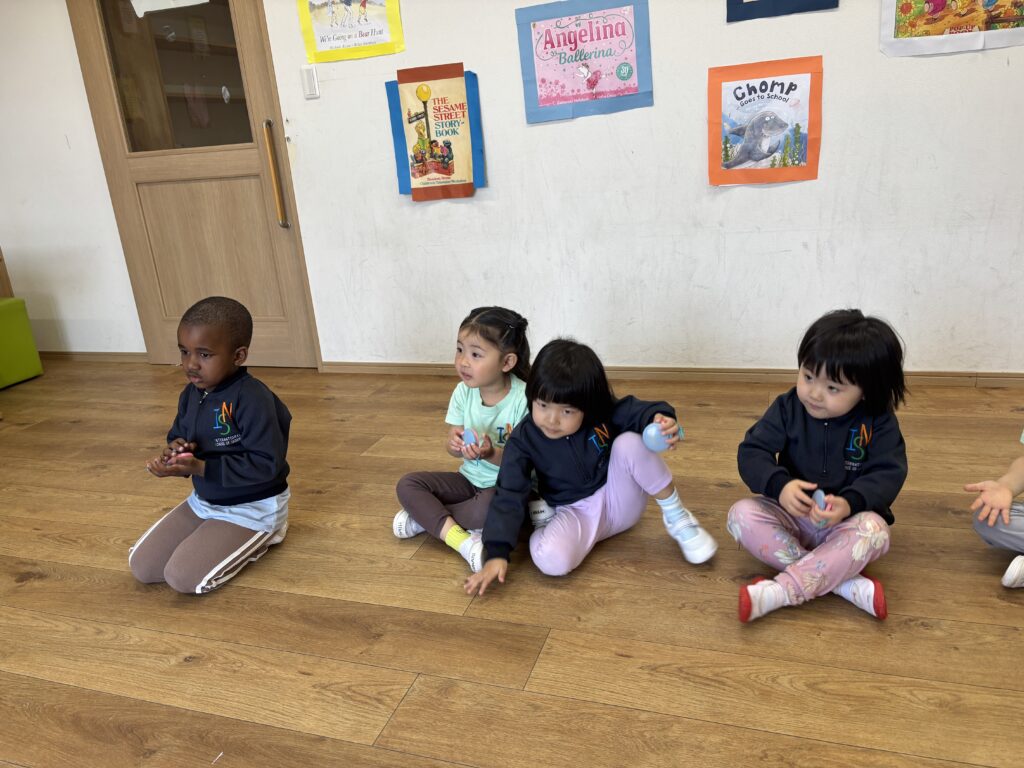 In their music lesson, the children explored different rhythms and movements through songs and actions. They listened carefully, followed along with gestures, and expressed themselves through their bodies and voices. Music time has been a joyful way for the children to build confidence, develop listening skills, and enjoy participating as a group.