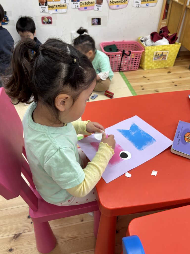This week, the children created their own Koinobori (carp streamers), learning about this special seasonal tradition. They explored a variety of colors, patterns, and materials as they carefully decorated their carp. This activity supported their fine motor development, creativity, and self-expression. Each Koinobori was unique, and the children showed great pride in their creations as they shared them with their friends.