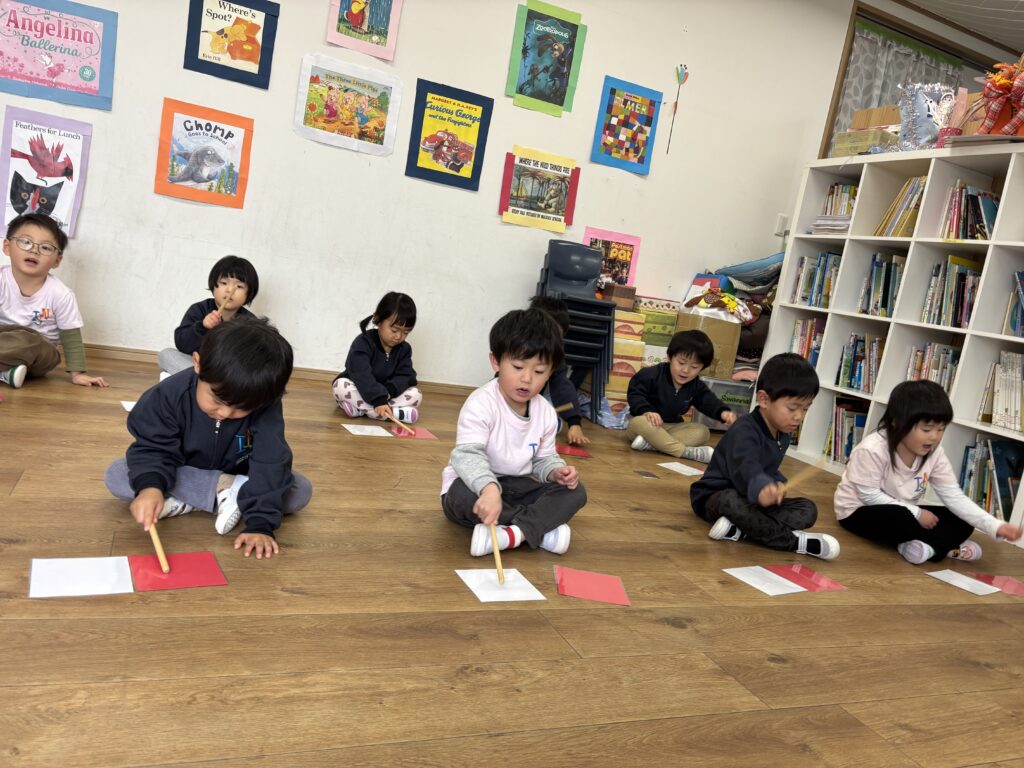 Our WARMEST greetings to all! Akemashite Omedetou Gozaimasu! HAPPY NEW YEAR! Canyon was ready to start the new year. There were no tears at all after the winter break, just smiles, hugs and greetings! We talked about Oshogatsu. Did you go to the shrine? Did you have ozouni soup? Someone shared that she did mochi-tsuki with her daddy. Who received O-toshidama? Did you say thank-you? YES!!