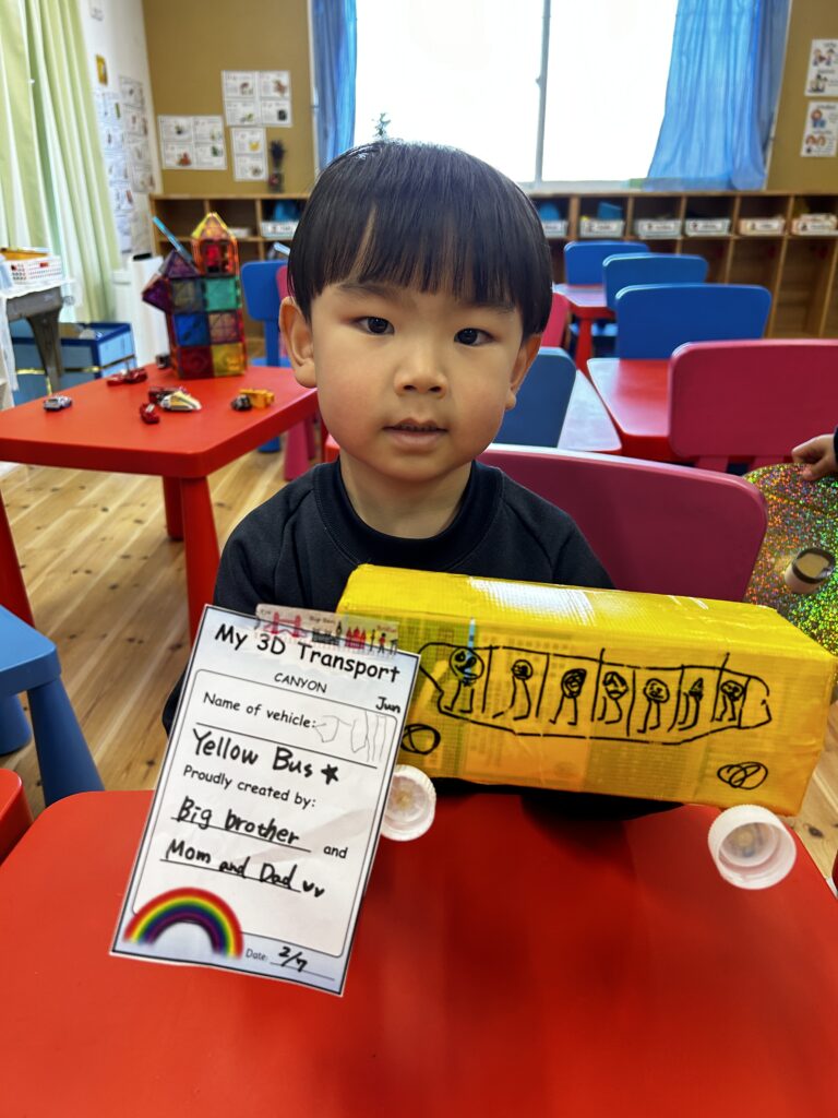 As part of the IB Learner Profile, being knowledgeable is one of our goals. To gain knowledge, we need to find out the facts and experience the learning. Canyon has been doing just that! We are learning so much with all our senses. We see, move, and listen to the many different types of transportation. This week, we read a book about wheels, and saw pictures illustrating the different vehicles. We learned the names and the different parts of a vehicle through videos too. That is our research! Best of all, students are in the centre the learning when they bring books and toy vehicles to school for Show and Tell. This is Canyon’s way of being a student-centred IB learning environment. Bravo!