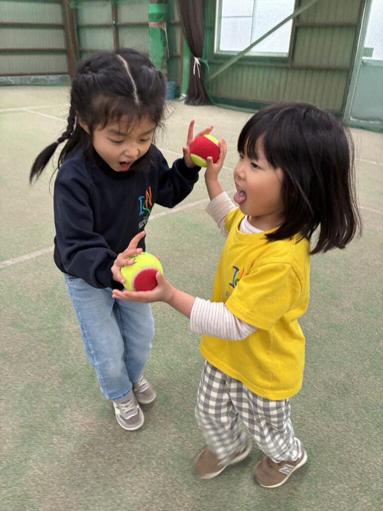 One of the most enjoyable experiences in the Rainforest class is the tennis lesson. Everyone is thrilled to participate and engage in physical activity. They learn how to hit the ball safely while having fun on the court. We eagerly anticipate the day when they can hit the ball independently.