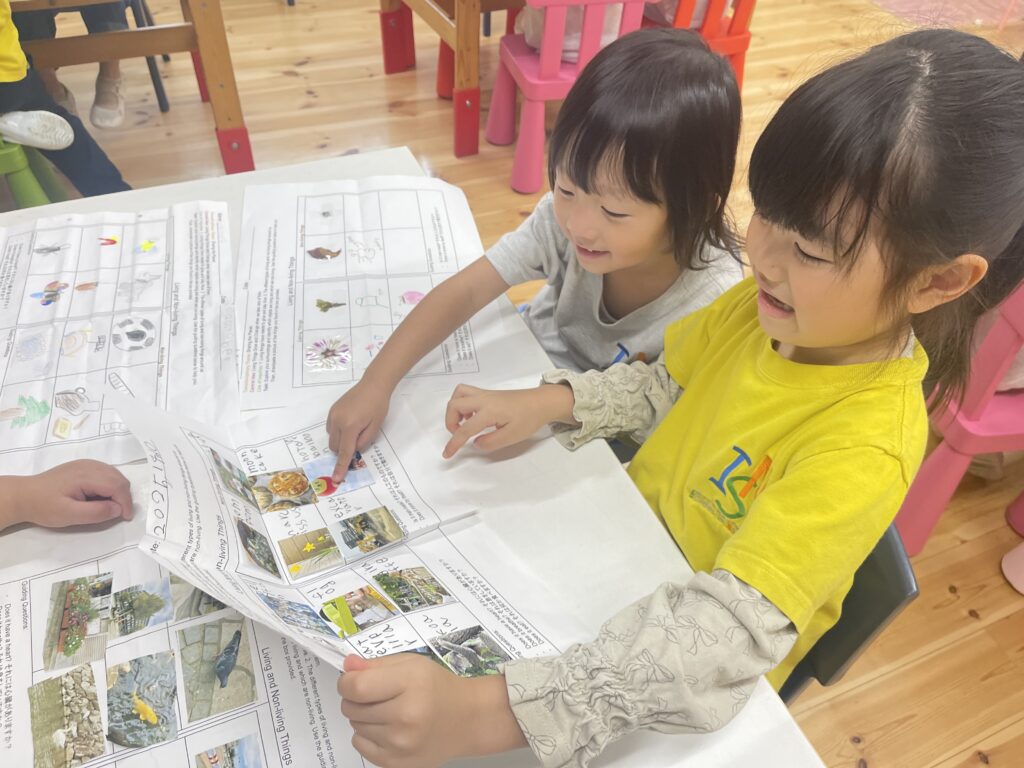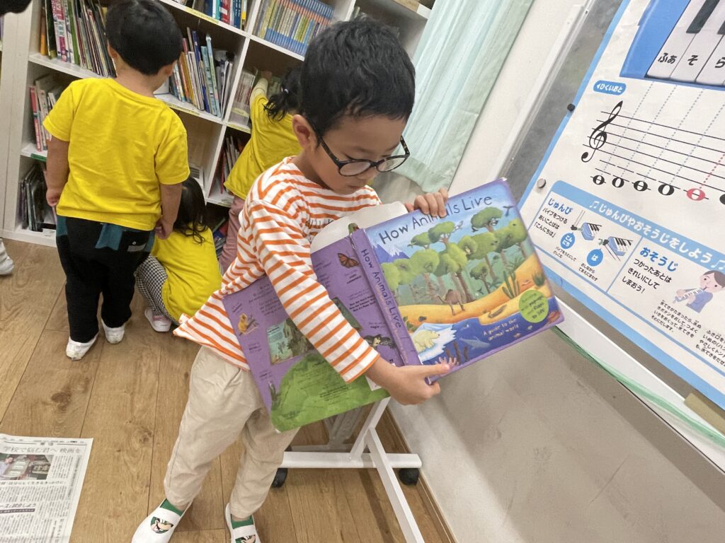 今週も「living and non-living things(生きているものと生きていないもの)」の探究を続けました。もっと学びを深めるために、クラスのみんなで図書館へ行き、このテーマについての本を探しました。特に動物や虫に関する本に興味津々で、楽しそうに選んでいたサバンナさん達。