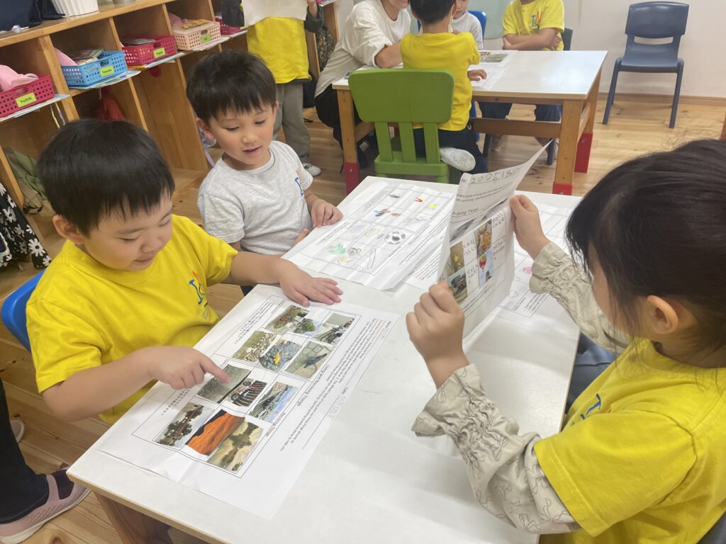 After observing the pictures in the books, we had a discussion and collected questions from the students. Some of their questions included: Why do animals eat other animals? Why can animals move by themselves? Are stones made by people? Are teddy bears living things? and more. We will explore these questions as we dive deeper into the inquiry. To start, we focused on a question that sparked a lively debate: Are trees living or non-living things? They don’t have a heart or move—so are they non-living? The children are very excited to find the answers!