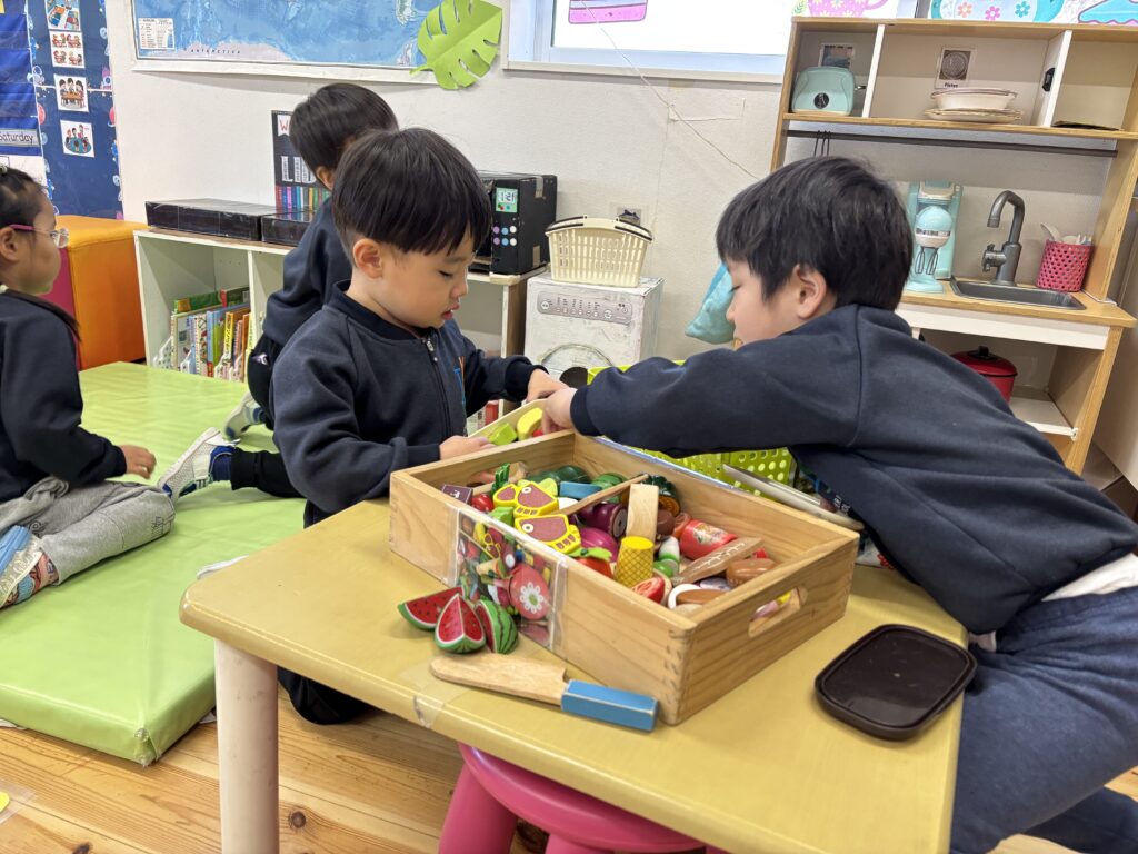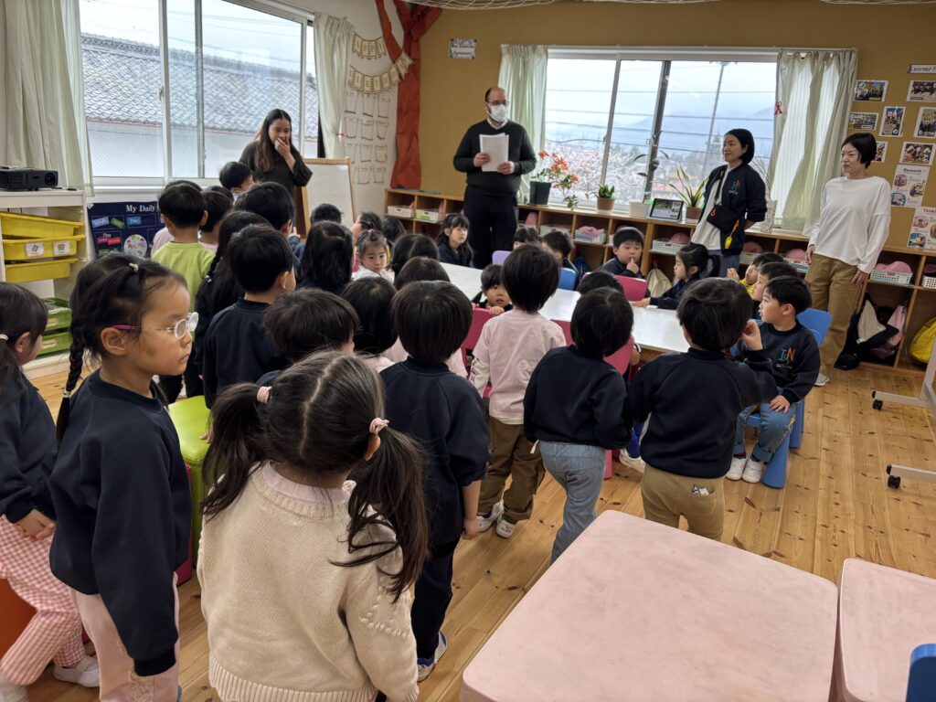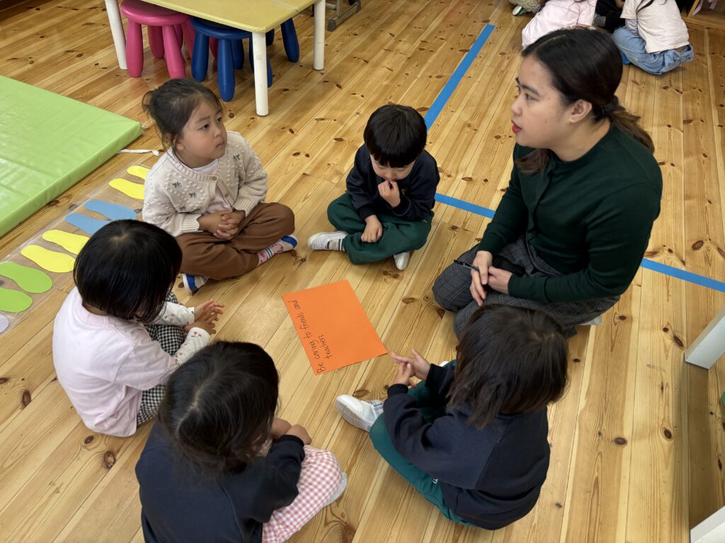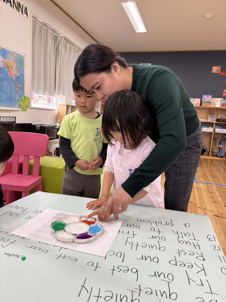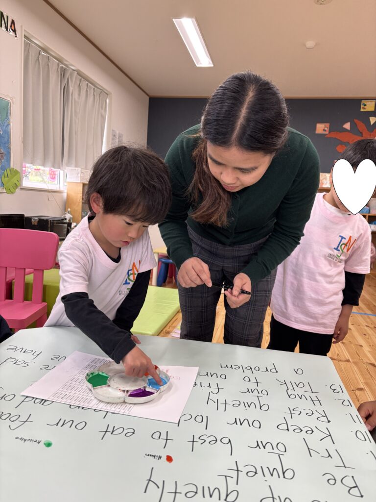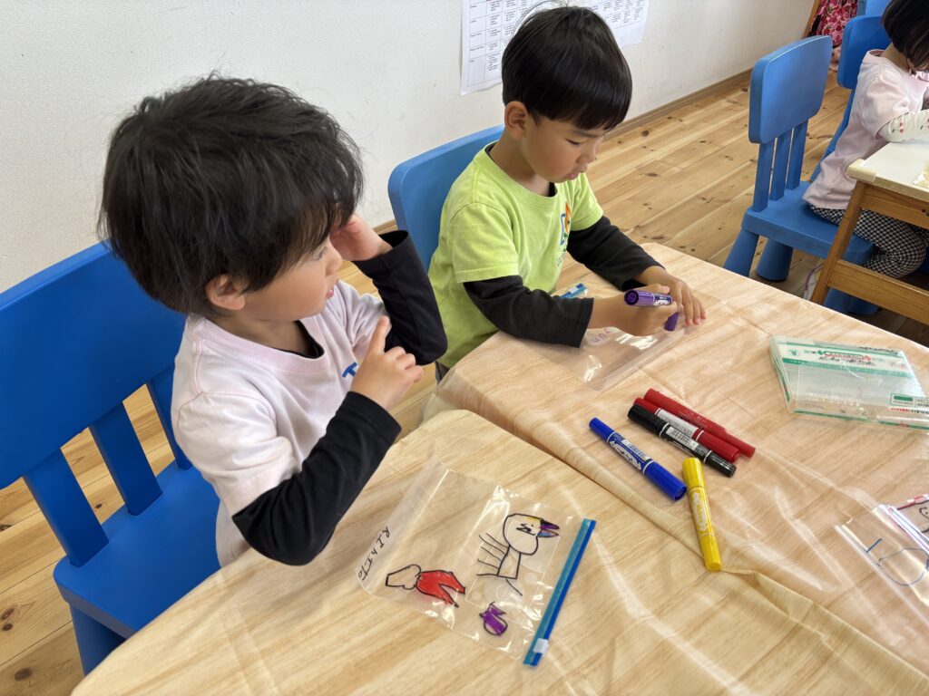 To celebrate the season, Ms. Shizuka read a story about spring. Inspired by the story, students created nature bags using ziplock bags and decorated them with colorful drawings of flowers, hearts, grass, and more. This activity allowed them to express their creativity while appreciating the beauty of spring. The class also enjoyed a walk outside, where they practiced walking safely along the road. They visited a nearby shrine, admired the beautiful cherry blossom trees, and took photos, making the experience both fun and memorable.