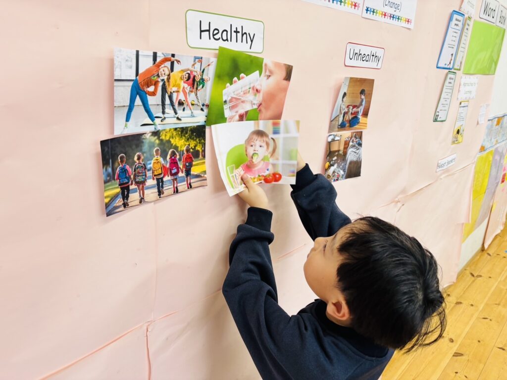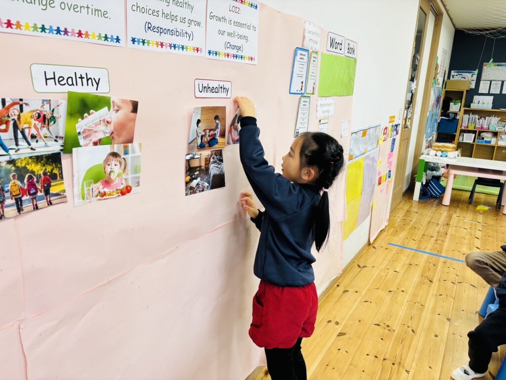It was great to hear and understand their ideas as we introduced our first line of inquiry. After identifying what healthy and unhealthy mean, the children took part in a sorting activity where they chose pictures and classified them as either healthy or unhealthy.