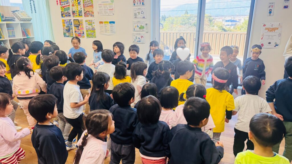 We had a wonderful time celebrating the birthday party this month! Three of our youngsters turned 6, and everyone was so excited to celebrate together. The children enjoyed listening to the story of a friendly witch named Wanda and even joined in her magic spell, saying, “Bubble, bubble, cookie trouble!” with big smiles. After the story, we all danced to a fun Halloween song, with the Rainforest class leading their younger friends. It was such a joyful celebration full of laughter, music, and Halloween fun!