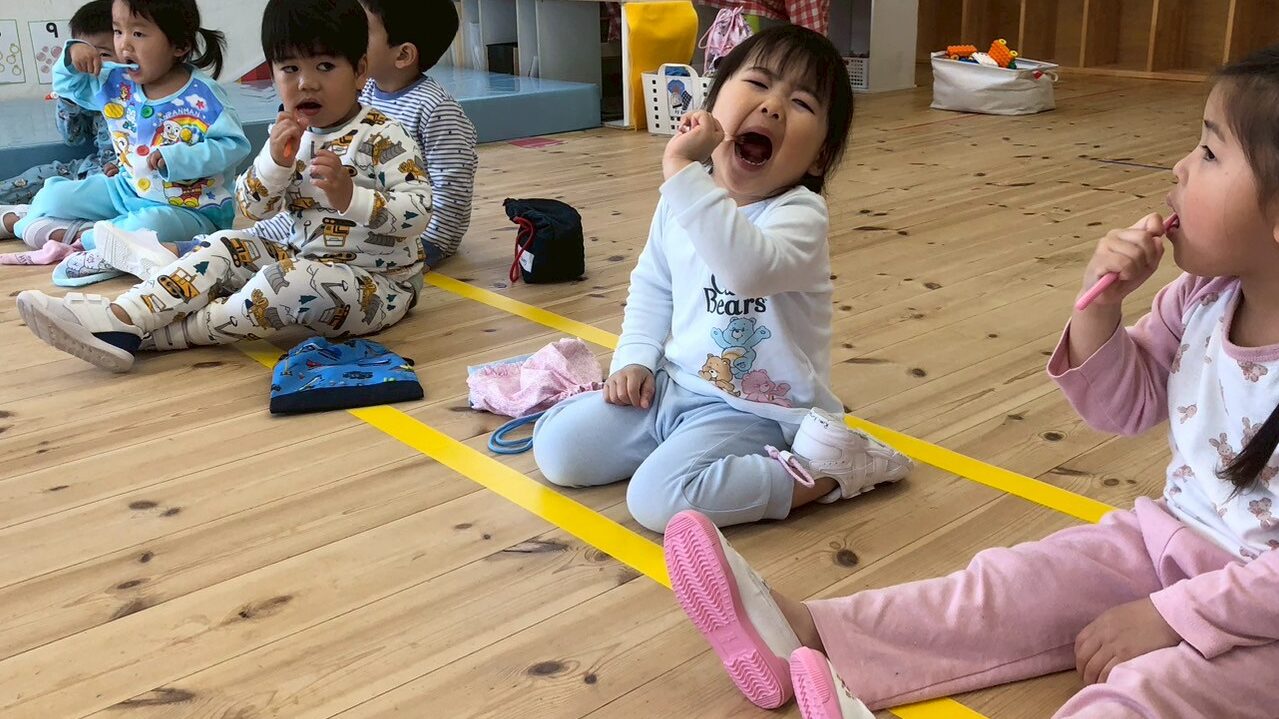 Let’s Brush Our Teeth for the whole song so that we can get rid of all the germs! Brush up, down, side to side and all around for a nice clean mouth.